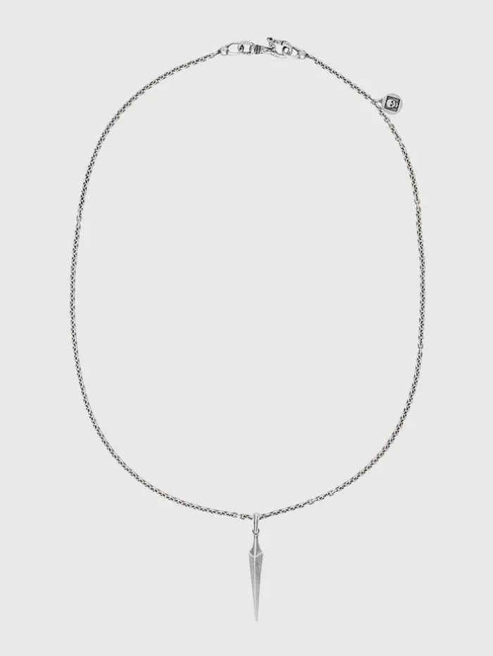 Suspended from a slender chain, this sleek sterling silver pendant from the Fall ‘24 Collection delivers a bold statement with its cleanly sculpted claw. Handcrafted in Turkey, the pendant exemplifies elegant simplicity. Its adjustable chain ensures a personalized fit, hanging just right whether over a tee or beneath a blazer for a subtle accent. Sterling SilverLength: 24 inchesPendant: 50.0×7.0 mmHandcrafted in Turkey