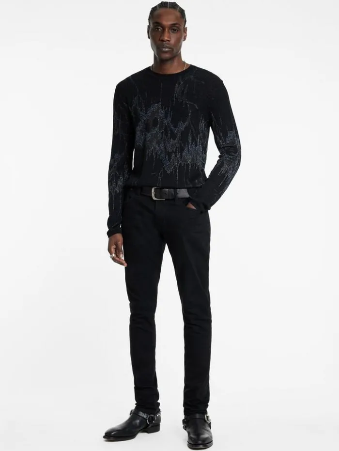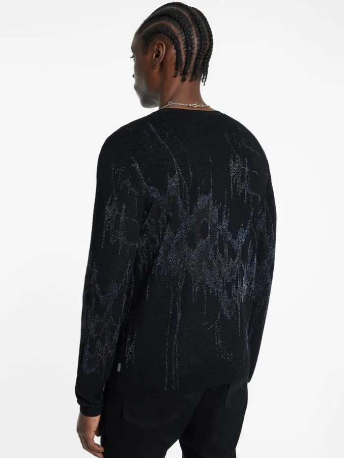 Capturing the celestial wonder of the night sky, our Hilo Crew Sweater is a marvel of cosmic artistry. It features a dynamic, multi-color jacquard pattern designed to mimic the Milky Way, enveloping you in the beauty of a star-studded abyss. Finely knit and finished with ribbed neck, cuffs, and hem, this sweater offers a snug and tailored fit. A discreet flag label at the side seam adds a subtle signature touch.52% Polyamide, 38% Cotton, 10% Metallized FiberHand Wash ColdCrew NeckLong SleeveMulticolored JacquardRibbed DetailingFlag Label At Side SeamMeasurements: Body Length: 26.5″, Chest (Flat): 20.5″, Sleeve Length: 34.5″