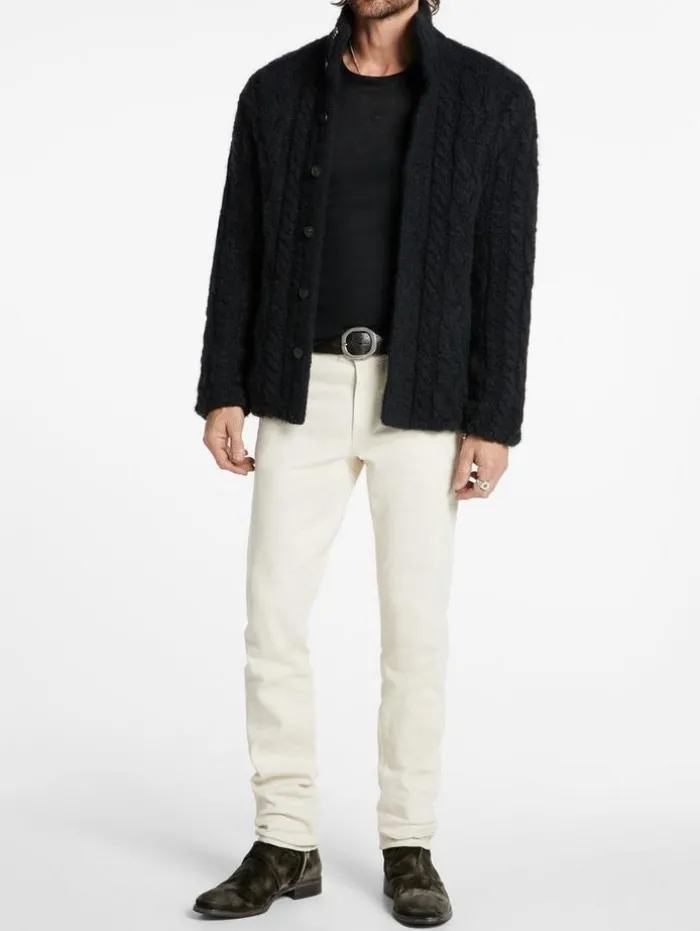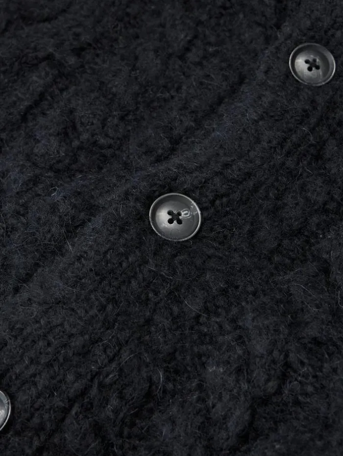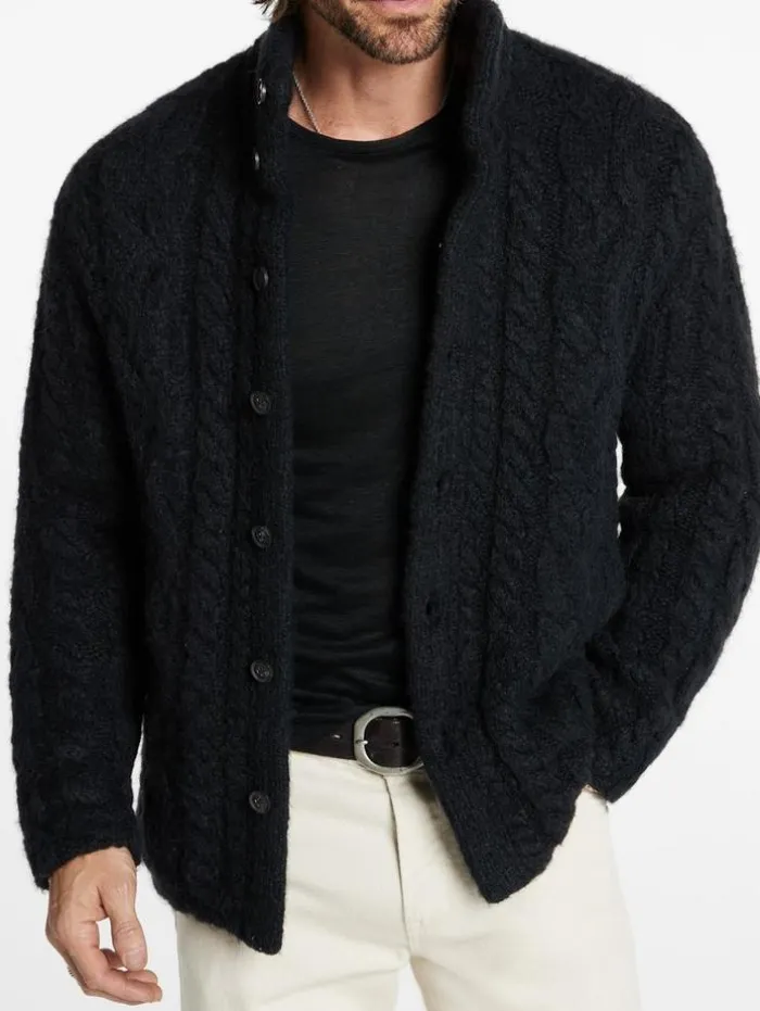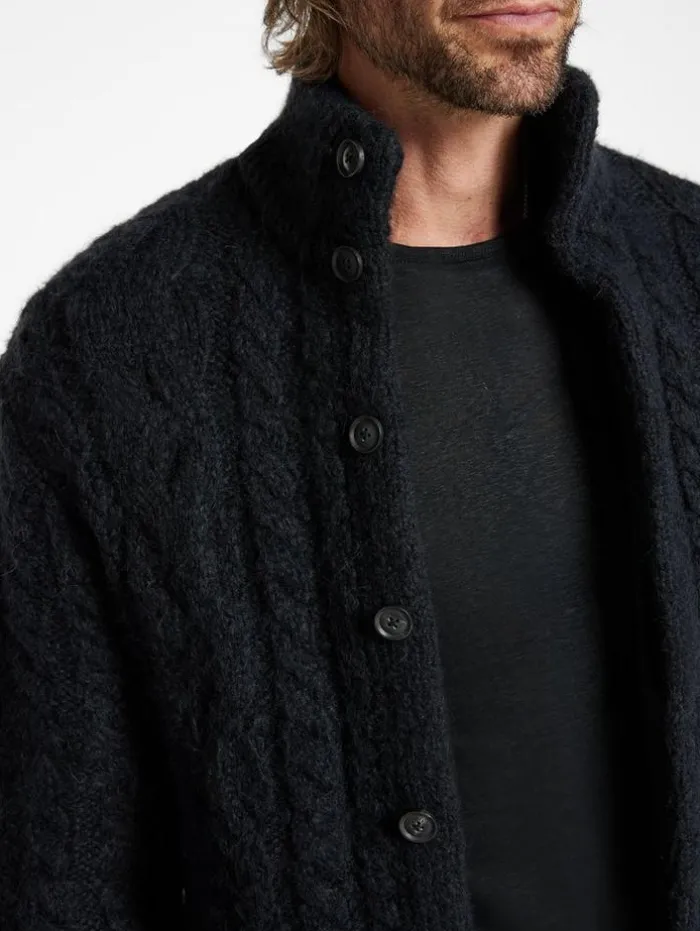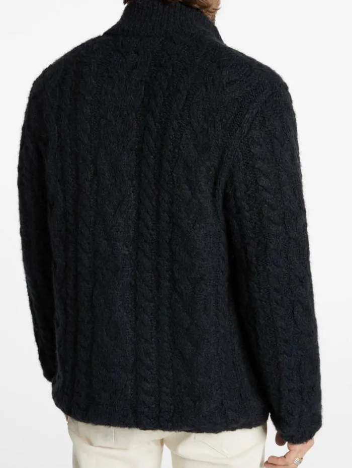 The Brandt Cable Sweater is a narrative in texture and warmth. Woven from a rich wool blend with a slub texture yarn, its meticulously engineered cable stitch tells a tale of time-honored techniques. An inner woven lining, accentuated with a gentle fill, ensures warmth and a luxurious touch against the body. Experience warmth and charm in a piece that seamlessly merges tradition with modern comfort. 49% Recycled Nylon, 41% RWS Wool, 10% Alpaca Dry Clean Only Easy Fit Mock Neck Long Sleeves Button ClosureMeasurements: Body Length: 29”, Chest Width: 21.5”, Sleeve Length: 35”