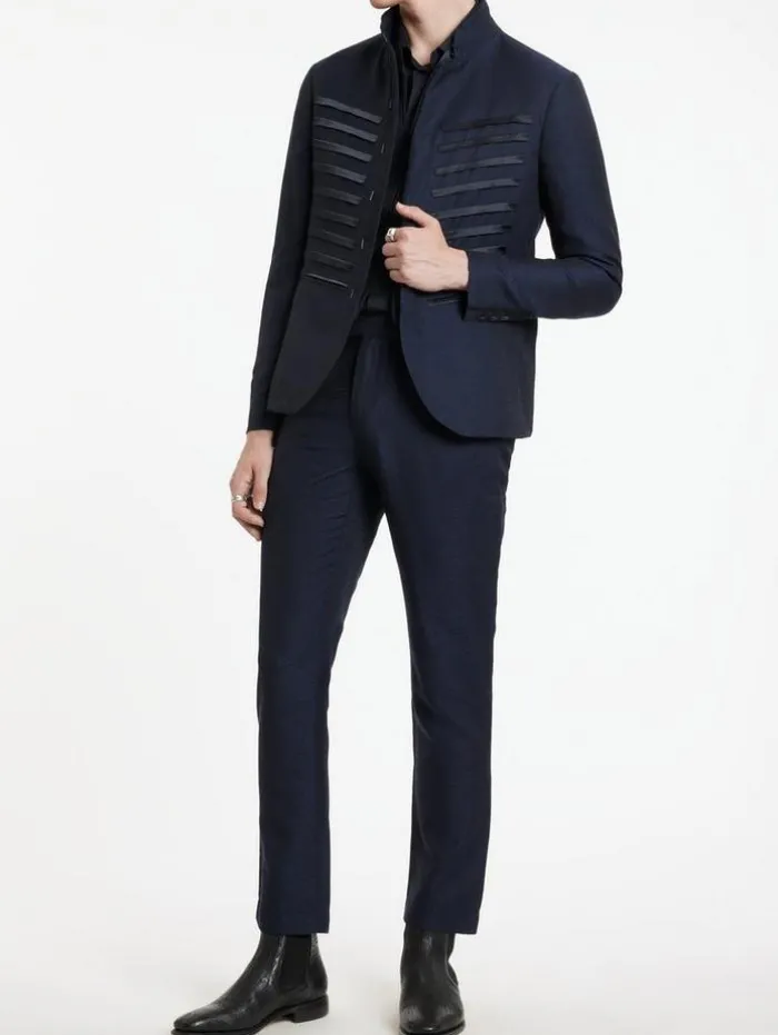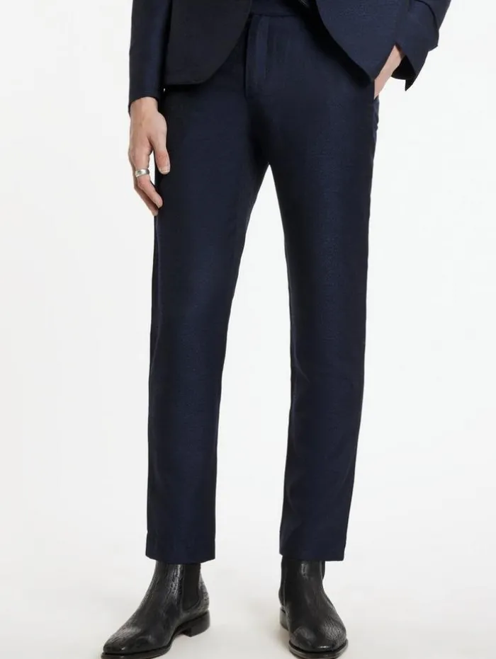 The Mercer Pants take on modern tailoring with a nod to nostalgic silhouettes. They are slim fitting and crafted from a wool blend fabric. The extended waistband ensures a comfortable fit with welt hip pockets for functionality. 60% Wool, 40% Polyester Dry Clean OnlySlim Fit Zipper Fly Extended Waistband Welt Hip PocketsItalian ClothMeasurements: Waist: 16.875″, Inseam: 32″, Leg Opening: 7″