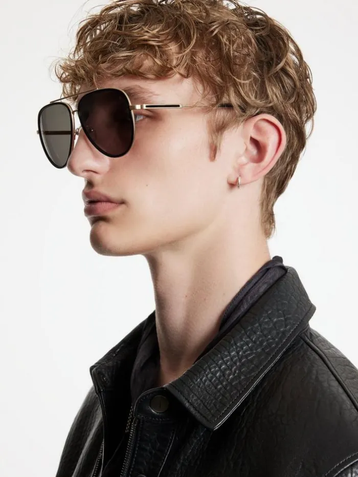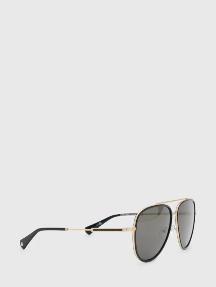 The classic aviator shape and quality materials make these John Varvatos sunglasses an instant classic. Comprised of the highest quality stainless steel, and black acetate, this frame is a must-have for the season. The double bar design in antique gold stainless steel pops against the black-enabled front design. The temples of this frame feature a black acetate inlay, and black temple tips.CR39 Lens, AR anti-glare coating 61-13-145 Crafted in Japan