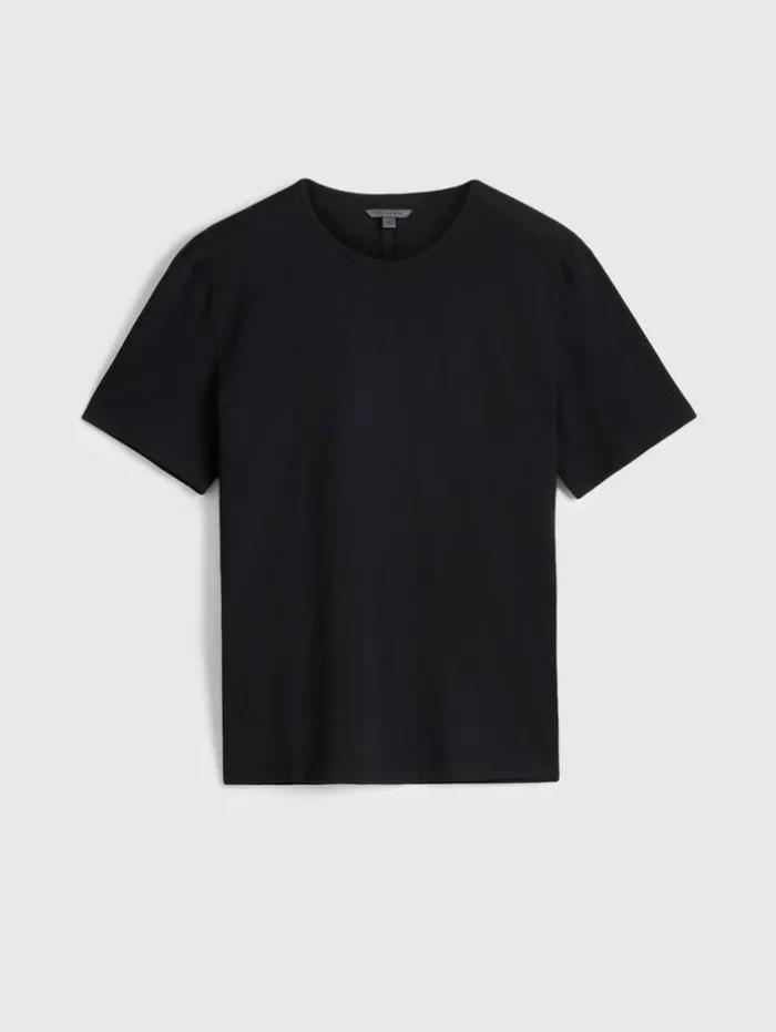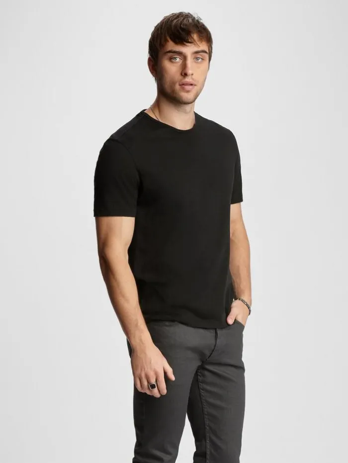 Cut from a rich, lightweight pima cotton, this updated tee is soft and comfortable with plenty of texture. Pairing well with virtually anything year-round, it truly finds its place with a pair of black jeans and suede boots.100% Pima Cotton Crewneck