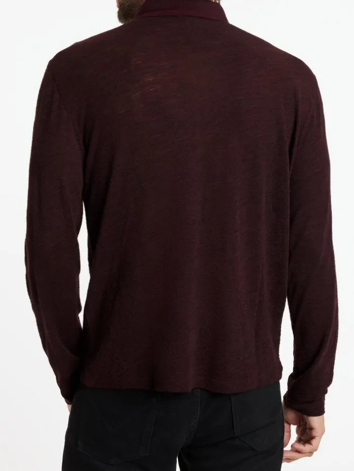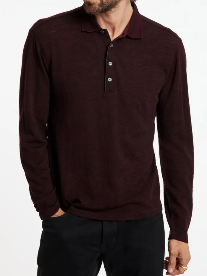 Seasonal polos are the perfect addition to your capsule wardrobe. The Presidio has a classic easy fit with long sleeves. The buckle texture fabric is elevated with racking stitch details and piping on the button placket – it’s a refined take on the basics. 100% Merino WoolDry Clean OnlyPulloverCollarLong SleeveEasy FitBucle TextureMeasurements: Front Body Length: 27.5″, Chest: 20.75″, Across Shoulder: 18.5″, Flat Sleeve Length : 34.75″