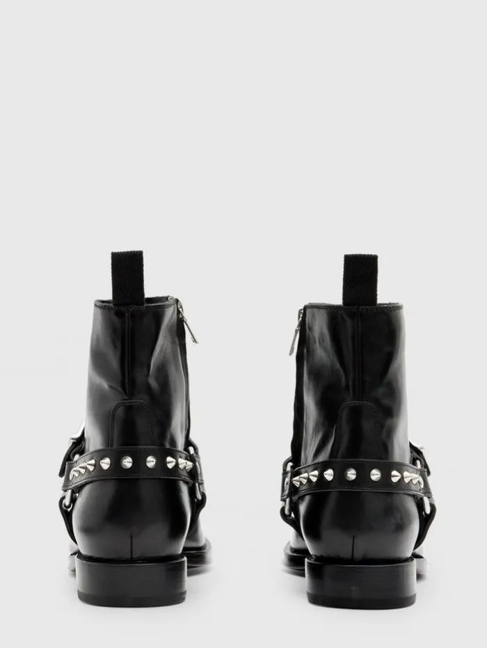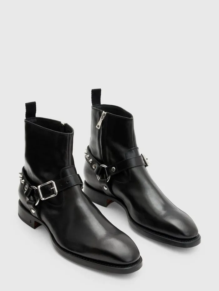 The Regent Harness Boot is an icon of defiance, crafted with the finesse of Italian artisans. Constructed to a chiseled silhouette in veg-tanned calf leather, it’s adorned with details that demand attention—from the bold cone studs punctuating the back harness to the perfectly placed zipper for easy wearing. Every element, down to the hand-stained leather sole, cements its status as a masterwork of modern rebellion. Upper: 100% Cow LeatherLining: 100% Calf LeatherProfessional Care By Leather ExpertMedial Zip ClosureVeg-Tanned MaterialBack HarnessSignature Cone Studded HardwareHand-Stained Leather SoleMade in Italy