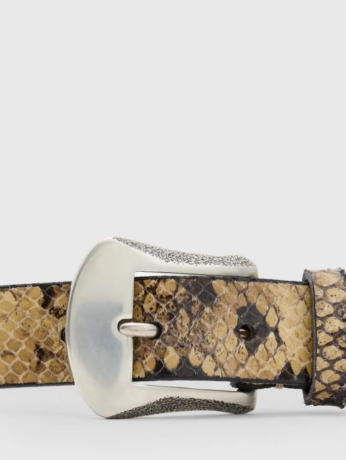 Enhance your ensemble with the Houston Belt, a symbol of refined elegance and superior craftsmanship. This belt, measuring 28mm wide, featuring a classic Western tip, seamlessly combines sophistication with a touch of rugged charm. Expertly crafted from washed full-grain calf leather, providing a rich, textured appearance and a distinctively vintage feel that grows more characterful over time. The belt is accentuated with a signature sandcasted pewter buckle and tip, adding unique, ornate details to its design. Made in Italy, the Houston Belt is an epitome of quality and artisan craftsmanship . Introduce this polished touch to both casual and formal attire for a versatile and stylish look. 100% Calf Leather Professional Clean by Leather Expert 28MMWashed LeatherWestern TipSandcasted Pewter Buckle & TipMade In Italy