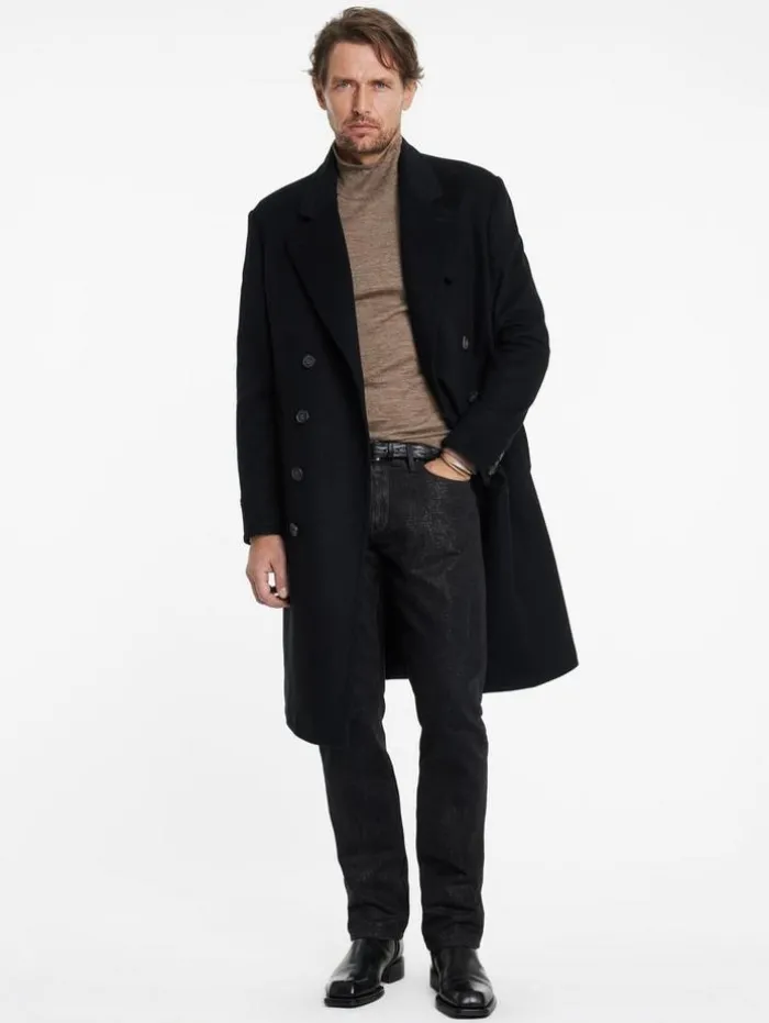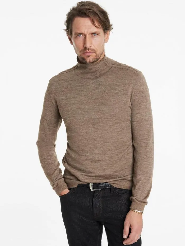 Reimagine audacious knitwear with our Alonte Mock Neck. Forged from an opulent alpaca-silk blend, this piece sculpts a daring silhouette that conforms to the body. It boasts sleek tape detailing along the shoulder that echoes the garment’s storied fabric heritage. Finished with a whipstitch detailing that offers a tactile dimension, projecting an aura of time-worn elegance with a contemporary edge.70% Alpaca, 30% SilkDry CleanLong SleeveRegular FitTape DetailingMock NeckMeasurements: Body Length: 27″, Chest Width (Flat): 20.5″, Sleeve Length: 34.5″