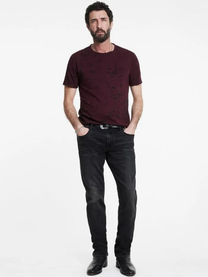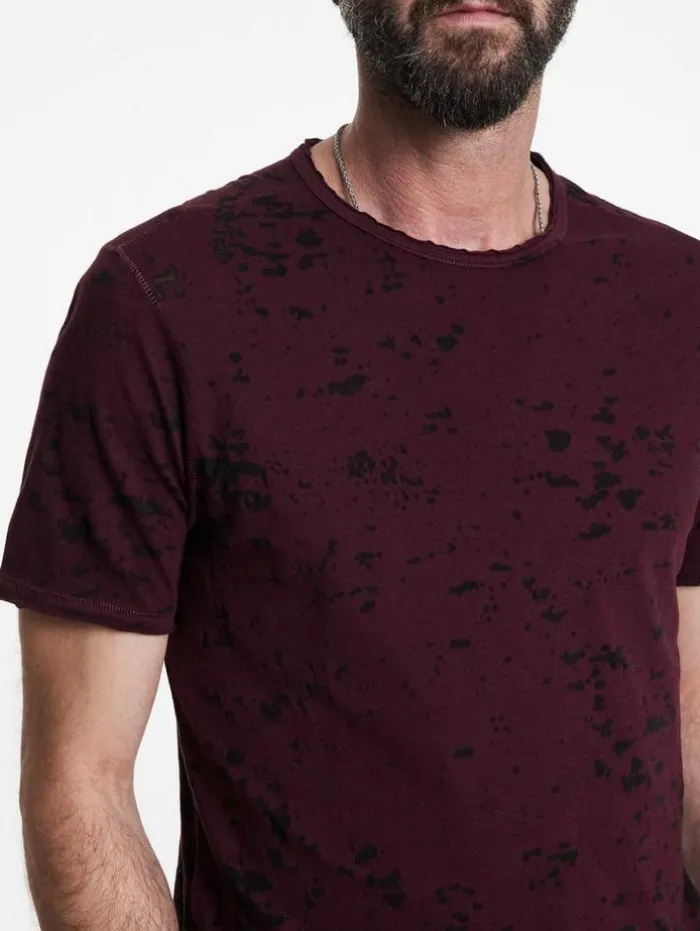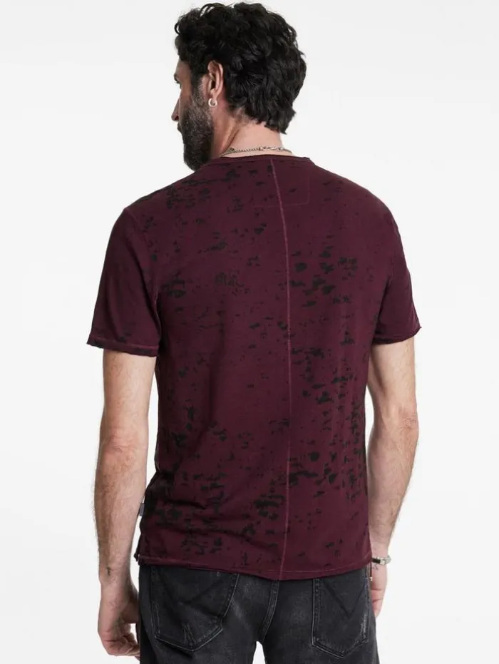 Every detail in our Eden Burnout Crew speaks volumes. Slip on this organic cotton blend tee for effortless cool. Its burnout pattern weaves through the fabric, enhanced by seams highlighted with vertical pickstitching. Its timeless silhouette features a side slit for exceptional comfort, while raw edge trims along the neck, cuffs, and hem infuse a rugged touch. Our signature flag label on the side marks its authenticity and quality craftsmanship.60% Organic Cotton, 40% PolyesterMachine Wash ColdCrew NeckPulloverShort SleeveRaw Edge DetailSignature Flag LabelMeasurements: Body Length: 27.5″, Chest Width (Flat): 20.5″, Sleeve Length: 17.5″