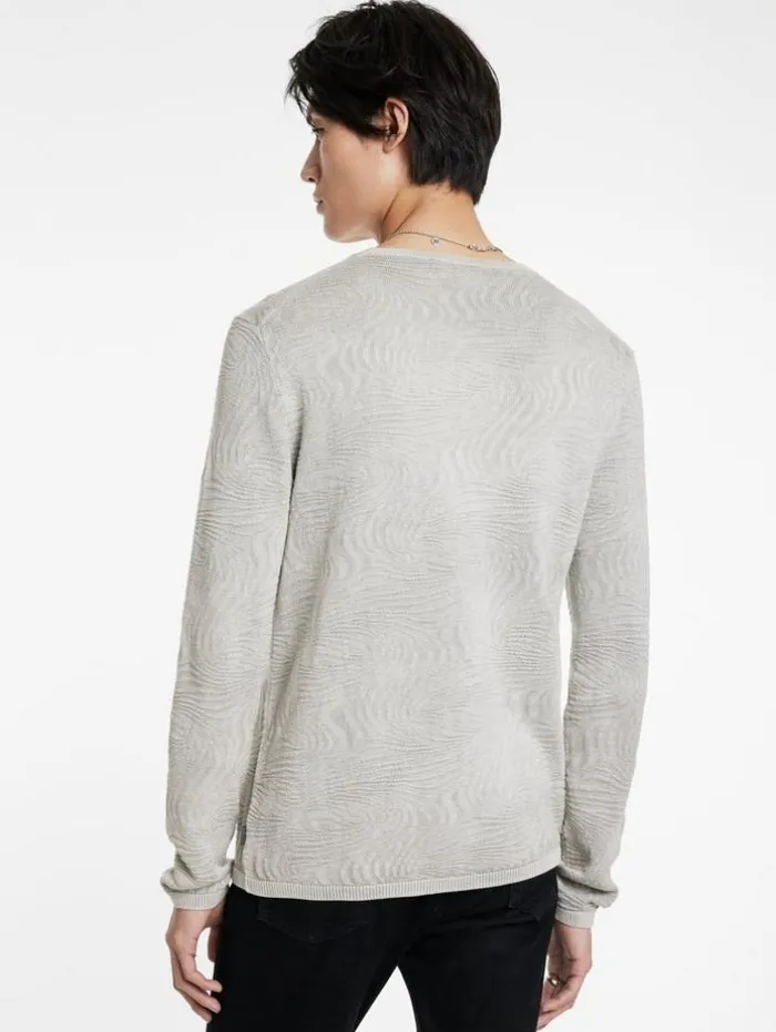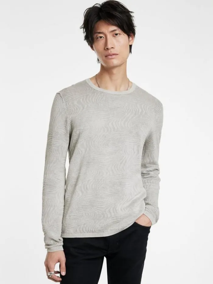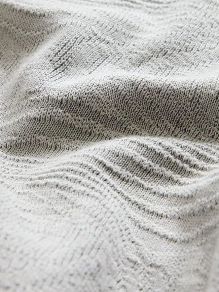 Where nature’s rhythm clashes with urban design, the Mercer Crew emerges. Knitted from organic mercerized cotton, it features an abstract wave pattern that instantly captivates the eye, accentuated by a deliberate wash that deepens the dramatic interplay of textures–highlighting the highs and lows throughout. Finished with a rolled neckline trim and signed off with our signature flag label, it subtly declares its edgy elegance.100% Organic Mercerized CottonMachine Wash ColdCrew NeckLong SleeveAbstract Wave PatternRolled Neck TrimJV Flag LabelMeasurements: Body Length: 27″, Chest Width (Flat): 20.5″, Sleeve Length: 34.5″