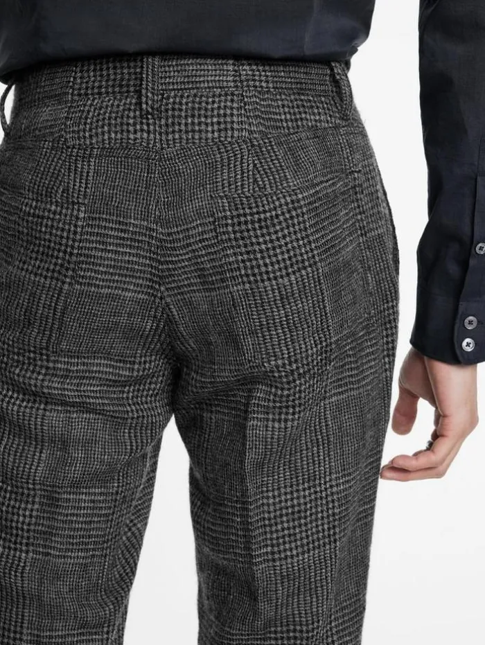 Fall ’24 presents a modern take on classic tailoring with our updated Motor City Pants. These slim-fit pleated pants are crafted from virgin wool, featuring a soft, light, felted texture enhanced by a tumbler washed finish for a uniquely rugged yet polished appearance. The sleek silhouette strikes a balance between timeless elegance and contemporary edge. Pair them with a tailored jacket or leather outerwear for a sophisticated, effortlessly chic look.91% Cotton, 9% PolyamideDry Clean OnlyLow Rise, Sim FitZipper FlyPleated DetailingTumble WashedMeasurements: Waist: 34.5″, Hip: 41.5″, Inseam: 33″