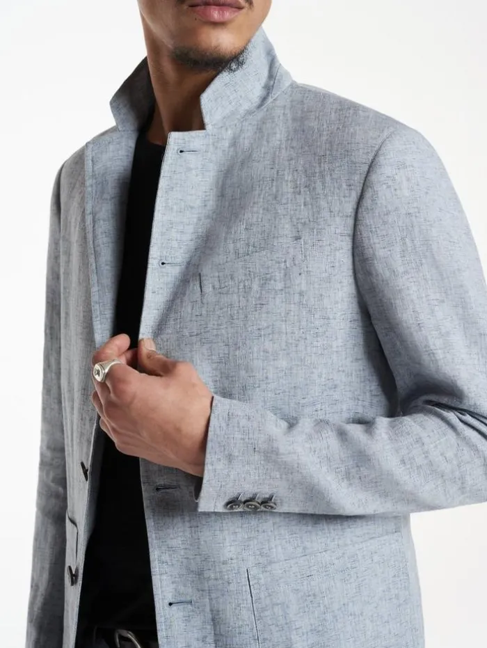 This Priory Jacket takes its inspiration from classic suiting. Crafted from linen with an additional crosshatch motif for a refined texture. There’s room for heritage tailoring in everyone’s wardrobe even in the summer months. 100% LinenDry Clean OnlySlim FitPatch PocketsButton FrontCross Hatch TextureItalian Cloth