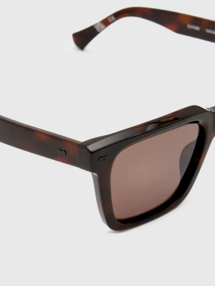 Inspired by the vibrant world of music, our Wooster Square Sunglasses echo the distinctive features of a guitar headstock, with rivets accentuating the temple head and front endpiece. These havana frames, a testament to our dedication to artistry, are crafted from acetate, boasting elaborate detailing that elevates the design. The solid brown lenses, enhanced with a special AR blue back coating offer both unique style and additional eye protection.Frame Material: AcetateLens Color: Solid BrownGuitar Headstock inspired RivetsAR Blue Back Coating