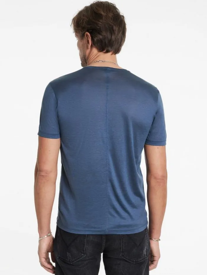 The defiance is all in the details of our Amato Crew. Woven in Portugal from a premium silk-cotton blend, this sleek crew neck exudes subtle rebellion with its unique shoulder tape detailing. Designed for the discerning JV man, it’s an essential core piece for your everyday wear.60% Mulberry Silk, 40% Organic CottonMachine Wash ColdCrew NeckRegular-FitShort SleeveTape DetailMade in PortugalMeasurements: Body Length: 27.5″, Chest Width (Flat): 20.75″, Sleeve Length: 17.5″