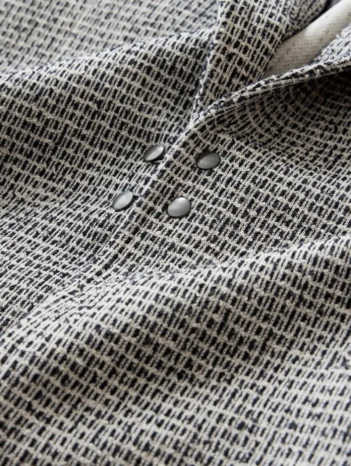 A contemporary approach to tailoring is embodied in the Lynn Jacket. This peak lapel jacket showcases the JV signature style with its unique hook and bar closure at the center front, adding a distinctive edge. Crafted from premium Italian fabric, the Lynn Jacket offers unparalleled quality in both fit and feel. Its sharp peak lapels are complemented by the sleek hook and bar trim, marrying timeless elegance with a contemporary twist. Ideal for those who value precision in design, the Lynn Jacket is an essential statement piece that brings a modern touch to any sophisticated wardrobe. 91% Cotton, 9% PolyamideLining: 100% CuproDry Clean OnlyHook & Bar ClosurePeak LapelItalian FabricMade In ItalyMeasurements: Front Body Length: 29.5”, Center Back Body Length: 28.75”, Across Shoulder: 18.5”, Chest: 20.875” Flat, Sleeve Length: 26.25”