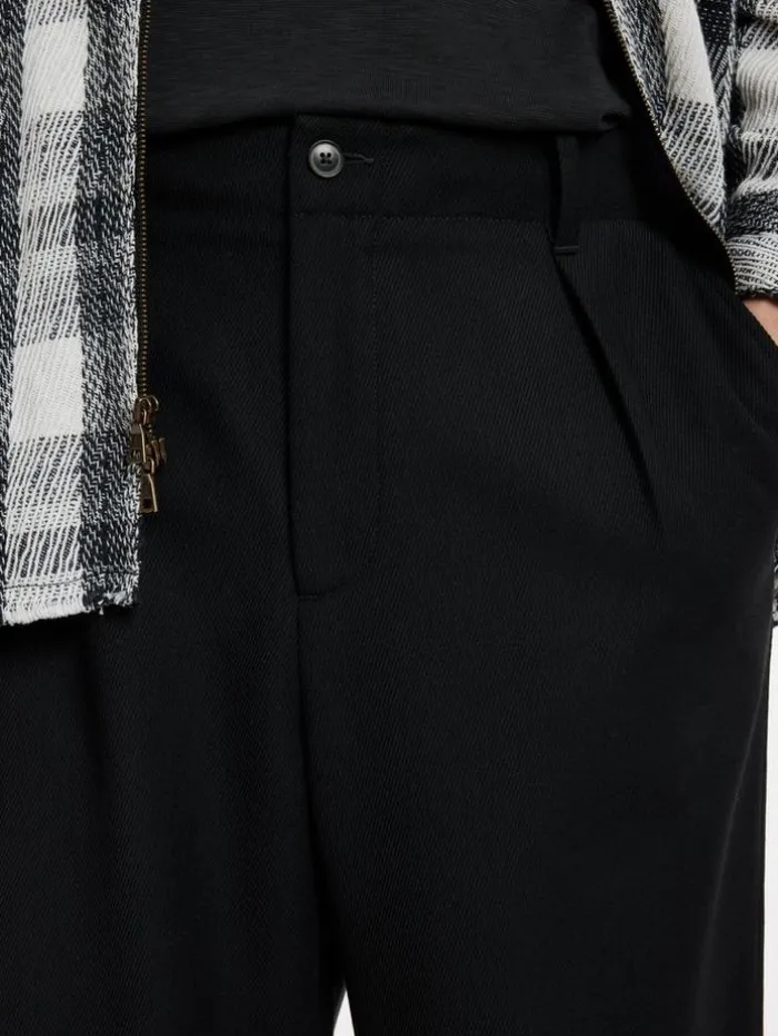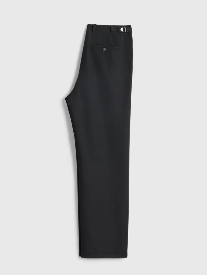 The Ely Pants are a new addition to our collection. Understated, they provide a relaxed yet elegant appeal. With a belted waist for extra shaping where needed, we’re tucking in a band tee to achieve the full look. 53% Recycled Polyester, 43% Wool, 4% Elastane Dry Clean OnlyRelaxed Fit Belted Waistband Button ClosureMeasurements: Waist: 17.125″, Inseam: 31.5″, Leg Opening: 9.625″