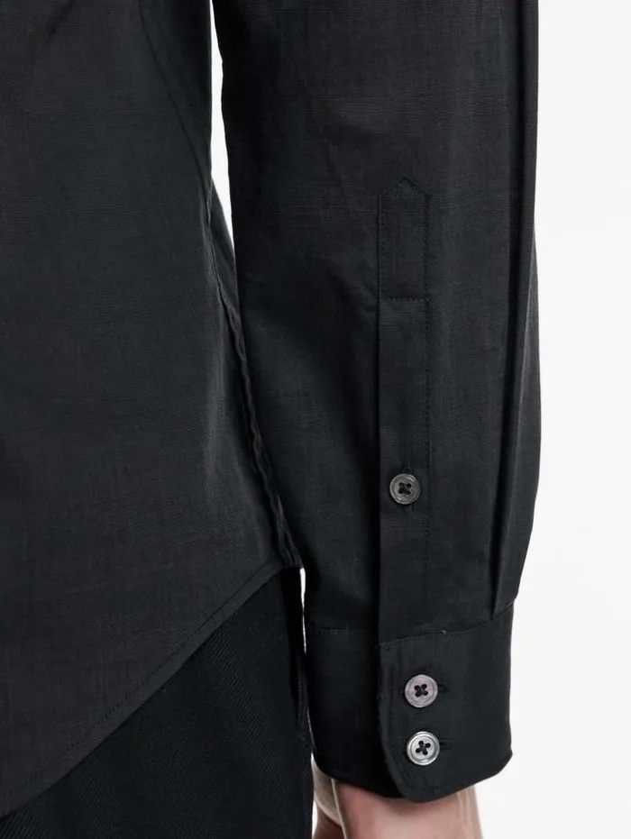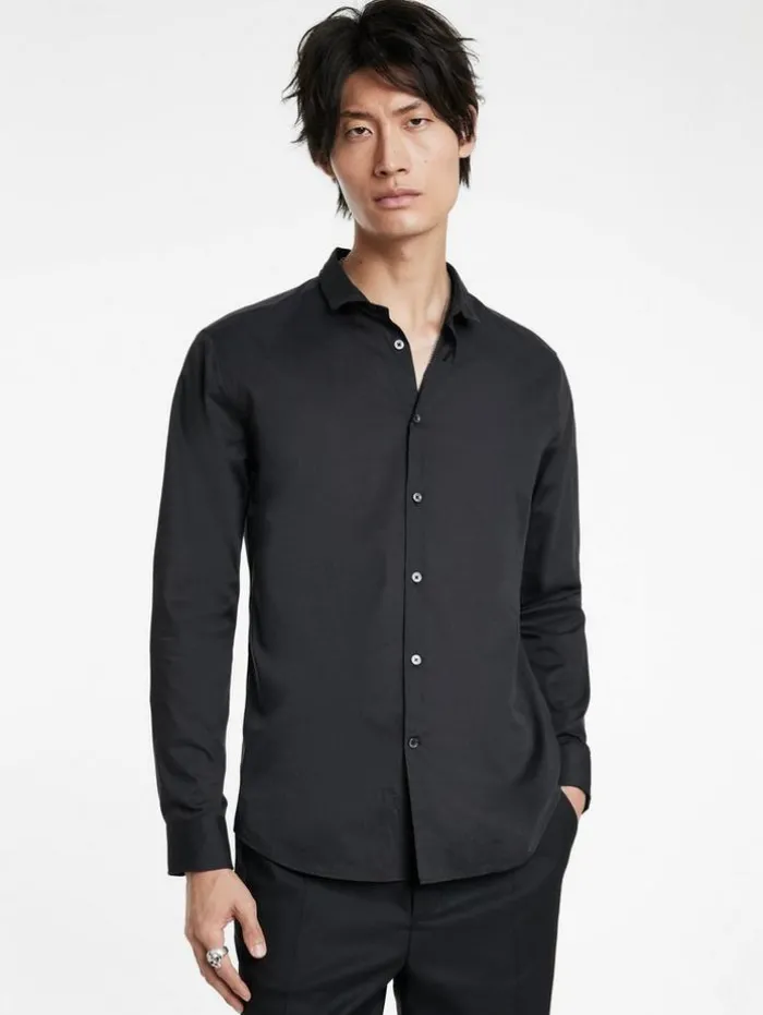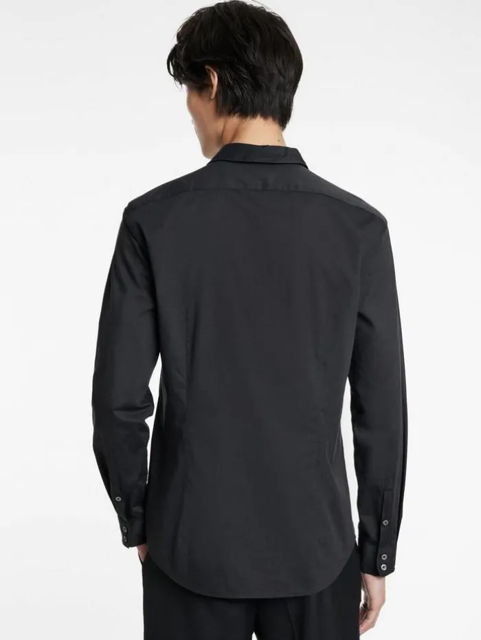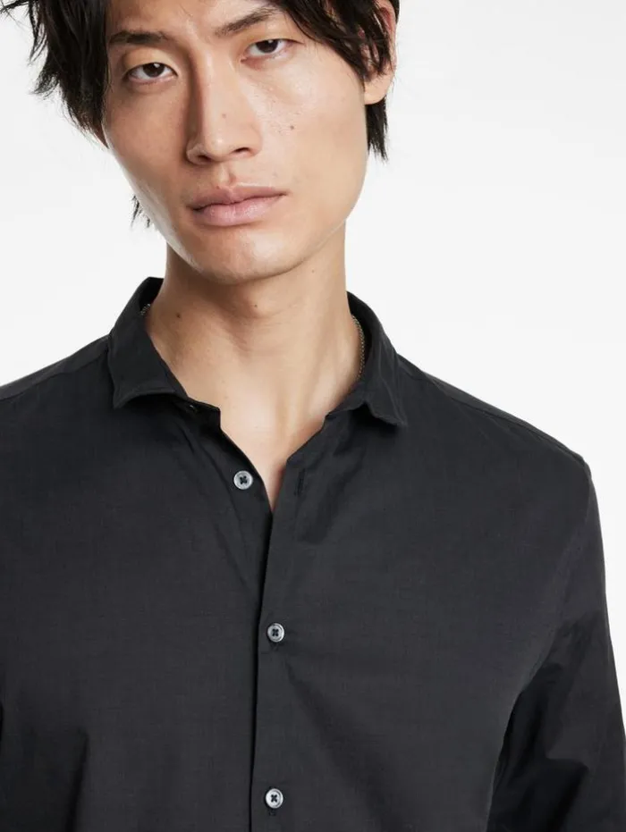 Tailoring where it counts – meet the Orchard Shirt. Crafted from premium Pima cotton, this slim-fit shirt offers exceptional comfort with its yarn-dyed popeline, known for natural stretch and softness. The long staple, thin yarns ensure durability and a luxurious feel. Featuring a wire-inserted shaped stand collar for a structured look, the shirt also boasts a distinctive popeline sheen and a subtly textured appearance, thanks to mercerization and calendering. Layer it over an essential tee or wear it solo for a polished appearance.100% CottonDry Clean OnlySlim FitButton Closure Long SleeveWire inserted CollarPopeline Sheen EffectMeasurements: Body Length: 78cm, Chest (Flat): 54.5cm, Sleeve Length: 65cm, Neck Circumference: 43cm