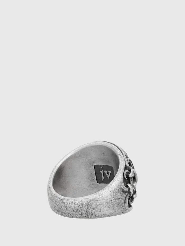 The John Varvatos Statement Ring introduces a convergence of craftsmanship and ornate Gothic architecture. Its intricately sculpted sterling silver sets a dramatic backdrop for the deep black onyx at its center, creating a bold contrast. Pair this piece with the All Around Bracelet for a unified look that elevates both evening and casual ensembles. Sterling SilverBand Width: 14.0 mmHeight Off Finger: 9.14 mmOther Dimensions: 17.50×15.0 mmOval StoneHandcrafted in Turkey