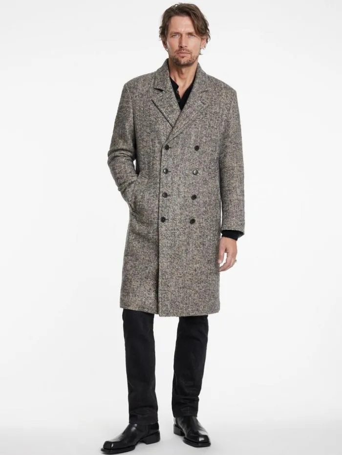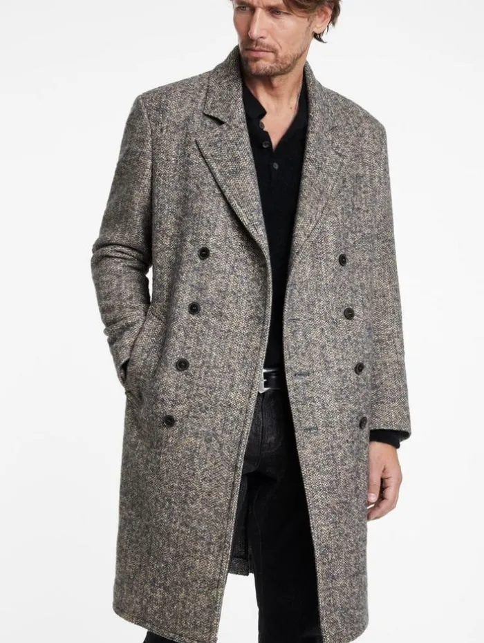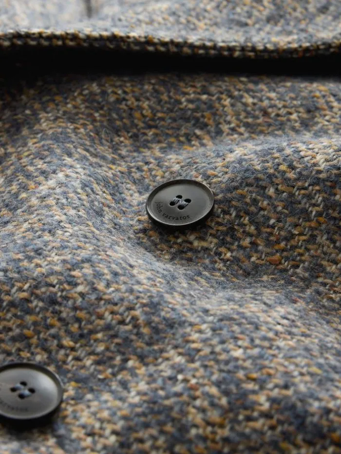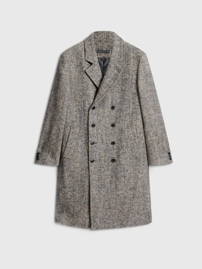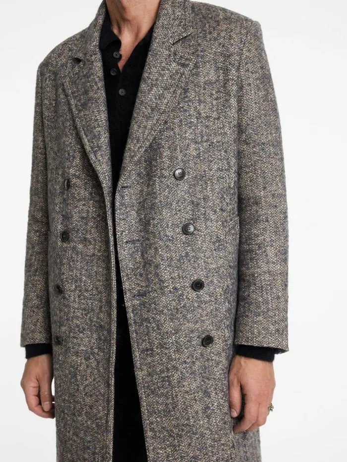 Refined craftsmanship and a luxurious wool-blend define the allure of our Fall ‘24 Terry Coat, crafted in Italy. This piece showcases a distinct tweed appearance, achieved through bouclé yarn, which provides a richly textured look that is both visually appealing and tactile. Soft finishing touches enhance the fluidity of the fabric, emphasizing the clean, defined lines of its design. Presented in a serene rain blue hue, this double-breasted coat features welt hip pockets that contribute to its sleek silhouette.36% Wool, 32% Acrylic, 20% Polyester, 8% Wool Polyamide, 2% Silk, 2% PolyamideDry Clean OnlyDouble BreastedWelt Hip PocketsSoft FinishingMade in ItalyMeasurements: Body Length: 111cm, Chest Width (Flat): 57cm, Shoulder Width: 49.5cm, Sleeve Length: 66cm