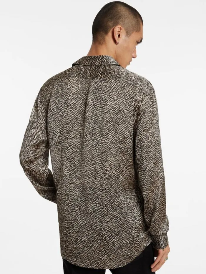 The Betwood Shirt, exudes classic design with its sharp pointed collar, a nod to traditional tailoring. Crafted from Japanese fabric, it stands out with an abstract dotted print, offering a modern interpretation of timeless style. This unique pattern adds visual intrigue, transforming the Betwood into a standout piece characterized by both subtlety and striking detail.100% Polyester Hand Wash ColdButton ClosurePointed CollarLong SleevesJapanese FabricAbstract Dotted PrintMeasurements: Front Body Length: 31″, Center Back Body Length: 30.5”, Across Shoulder: 19.25”, Chest: 21.25”, Sleeve Length: 26″