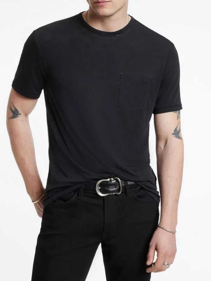 The Bond Burnout T-Shirt is a definitive essential that complements any item in your closet. This short sleeve shirt is crafted from a comfortable cotton blend that features a visually appealing burnout texture. With a convenient patch pocket at the chest, it adds a functional element to its classic design. Whether layered under our signature leathers or worn on its own, the Bond Crew undoubtedly takes center stage in your look. Main: 60% Cotton 40% PolyesterMachine Wash Cold Crew Neck Short Sleeve Burnout EffectSingle Front Patch Pocket