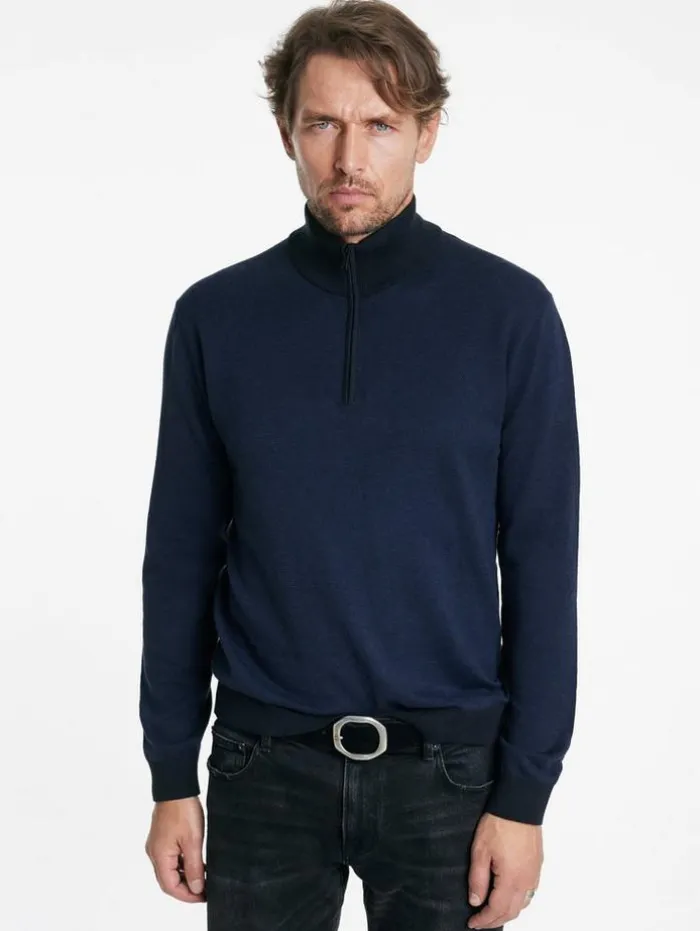 Our Grand Birdeye Half Zip transcends the ordinary layering piece, expertly woven from a rich cotton-cashmere blend in the classic birdseye pattern. Its sleek mock neck and distinct metal zipper, engraved with the signature logo, marks a sharp departure from the mundane. Finished with our iconic flag label, symbolizing our commitment to quality and elevated casual wear.95% Cotton, 5% CashmereMachine Wash ColdMock NeckHalf ZipLong SleeveBirdeye PatternJV Flag LabelMeasurements: Body Length: 26.75″, Chest Width (Flat): 20.5″, Sleeve Length: 34.5″