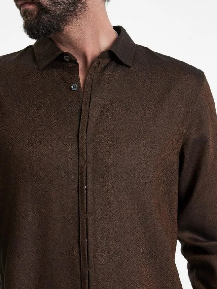 The Hickory Shirt turns understated design on its head with a fresh perspective that challenges convention. Crafted from virgin wool gauze and meticulously finished in a tumbler, this shirt offers a supremely soft texture that elevates everyday comfort. Its concealed button placket and neatly pleated details introduce a refined edge to the relaxed silhouette, blending traditional shirt elements with a modern twist.100% WoolDry Clean OnlyCollarLong SleeveConcealed Button PlacketTumbler FinishedMeasurements: Body Length: 72cm, Chest (Flat): 54cm, Sleeve Length: 65cm, Neck Circumference: 43cm
