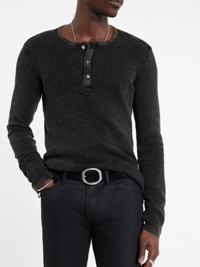 The Memphis redefines casual dressing. This henley style is made from cotton with a distinctive waffle texture that is brought to the forefront with a fadeaway wash. It accentuates the slub yarn texture, with a high-low finish. An easy piece that’s been masterfully treated for maximum impact.100% CottonMachine Wash Cold Henley PlacketLong Sleeves Waffle Texture Slub Yarn Fadeaway WashMetal Fisheye ButtonsSide Slit Details
