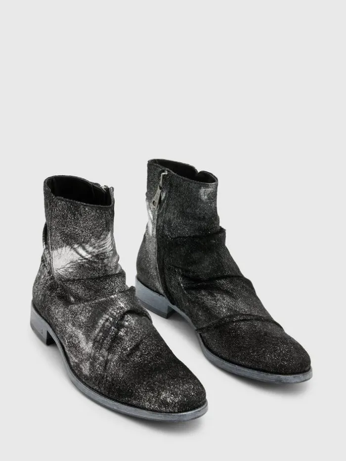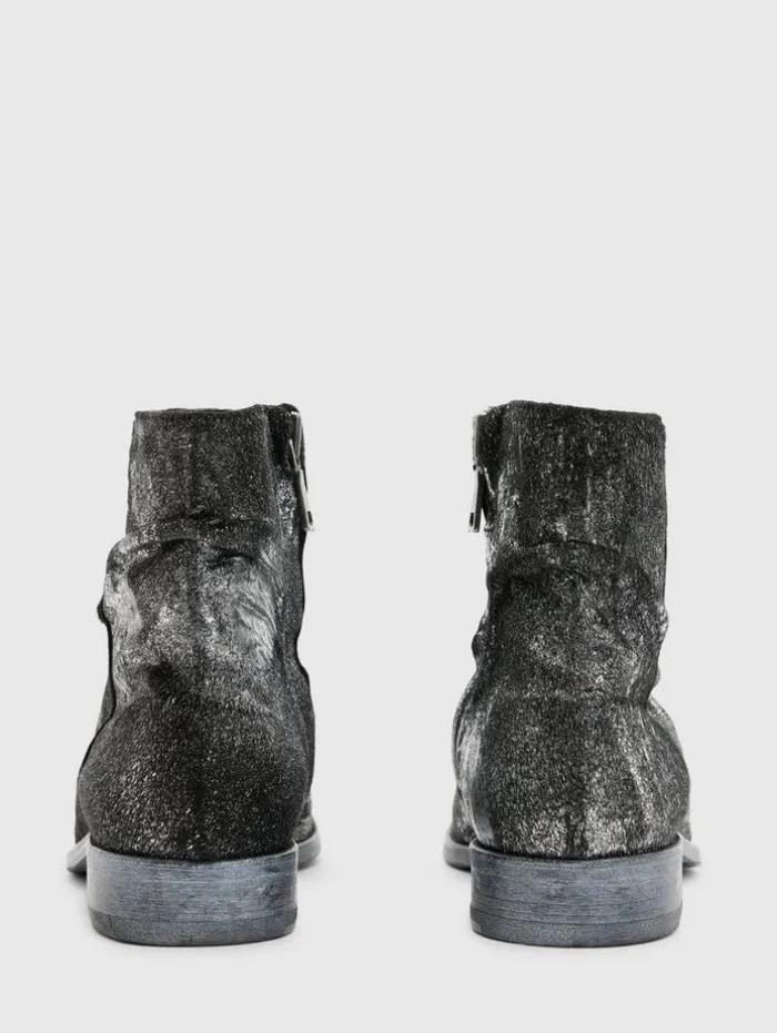 Resort ’24 unveils the Morrison Sharpei Boot, an iconic style reimagined in unique silver foil-sprayed calf hair. This Italian-made boot boasts luxuriously full calf lining and a medial zipper for easy wear, while the hand-stained leather sole and stacked leather heel underscore its premium construction. Upper: 100% Genuine LeatherSole: 100% Genuine LeatherProfessional care by leather expertMedial zip closureFull calf liningSilver foil sprayed calf hairHandstained leather soleStacked leather heelMade in Italy