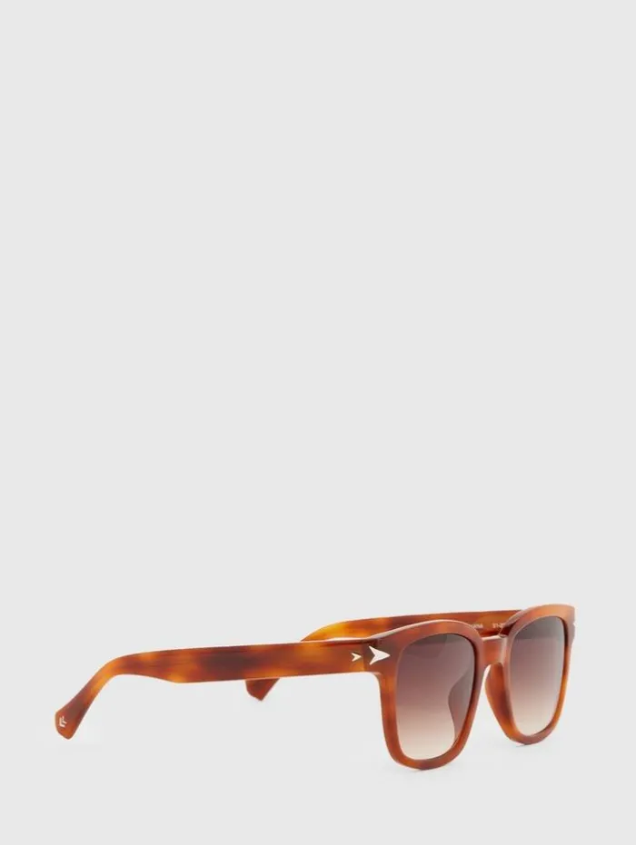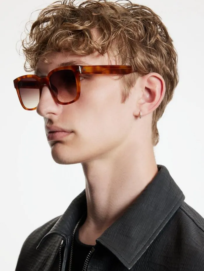 This frame is effortlessly cool with its traditional shape, and rock and roll edge. The wide temple arms and slightly rounded lenses. Are a fun take on this traditional look. The John Varvatos logo can be found on the temples in silver metal. Available in black, black texture, and blonde Havana, these frames also have complementary lenses in unique colors has a special AR blue black coating for additional eye protection.