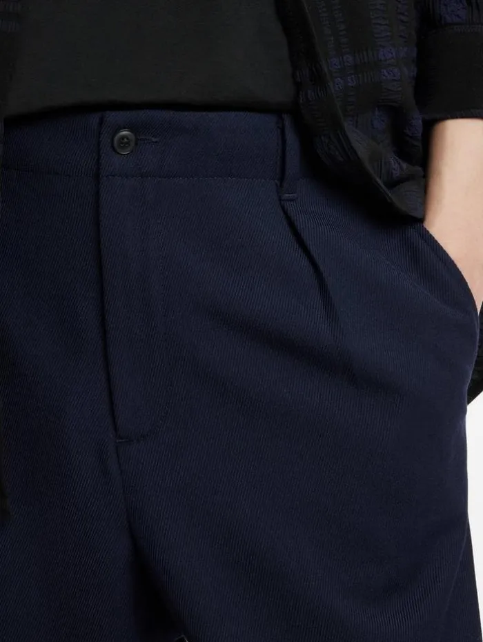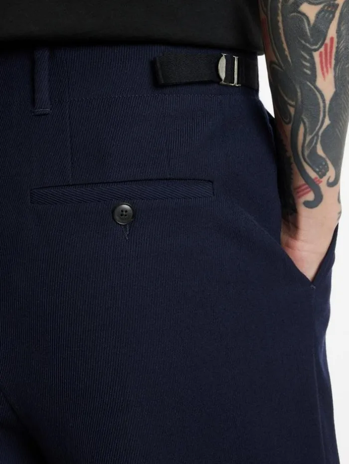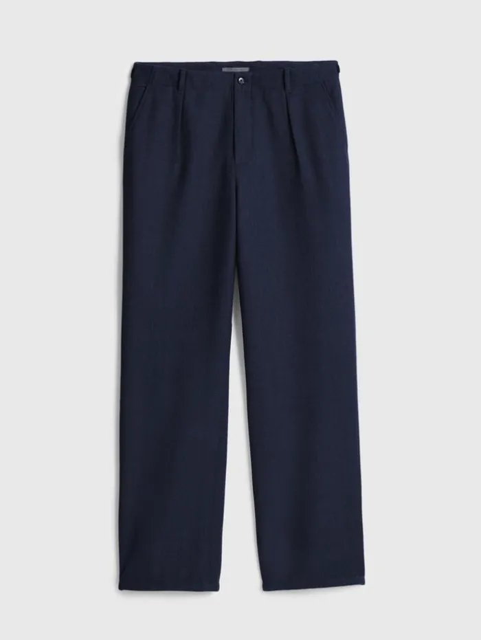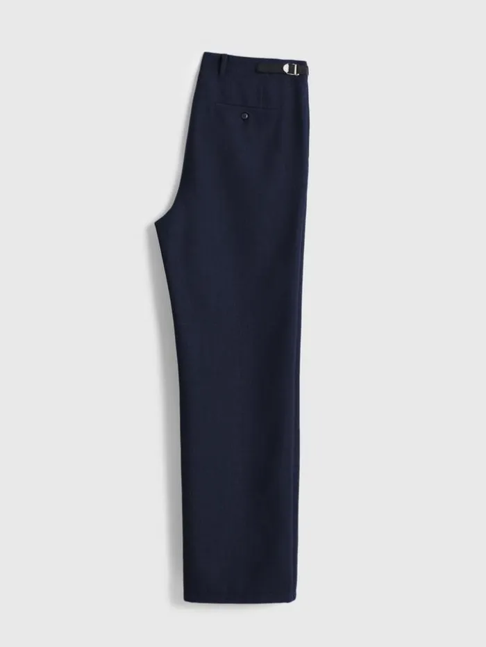 The Ely Pants are a new addition to our collection. Understated, they provide a relaxed yet elegant appeal. With a belted waist for extra shaping where needed, we’re tucking in a band tee to achieve the full look. 53% Recycled Polyester, 43% Wool, 4% Elastane Dry Clean OnlyRelaxed Fit Belted Waistband Button ClosureMeasurements: Waist: 17.125″, Inseam: 31.5″, Leg Opening: 9.625″