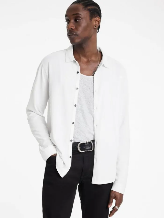 Precisely tailored, the Levi Shirt has been cut from a soft organic cotton knit fabric. Finished with a sharp collar and smooth button front closure, it achieves a sleek, constructed profile. Pair it with our Mercer Pant for a polished appearance.100% Organic CottonMachine Wash ColdLong SleeveCollarButton Closure