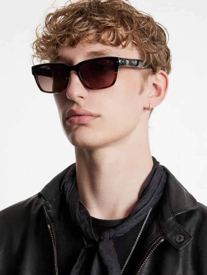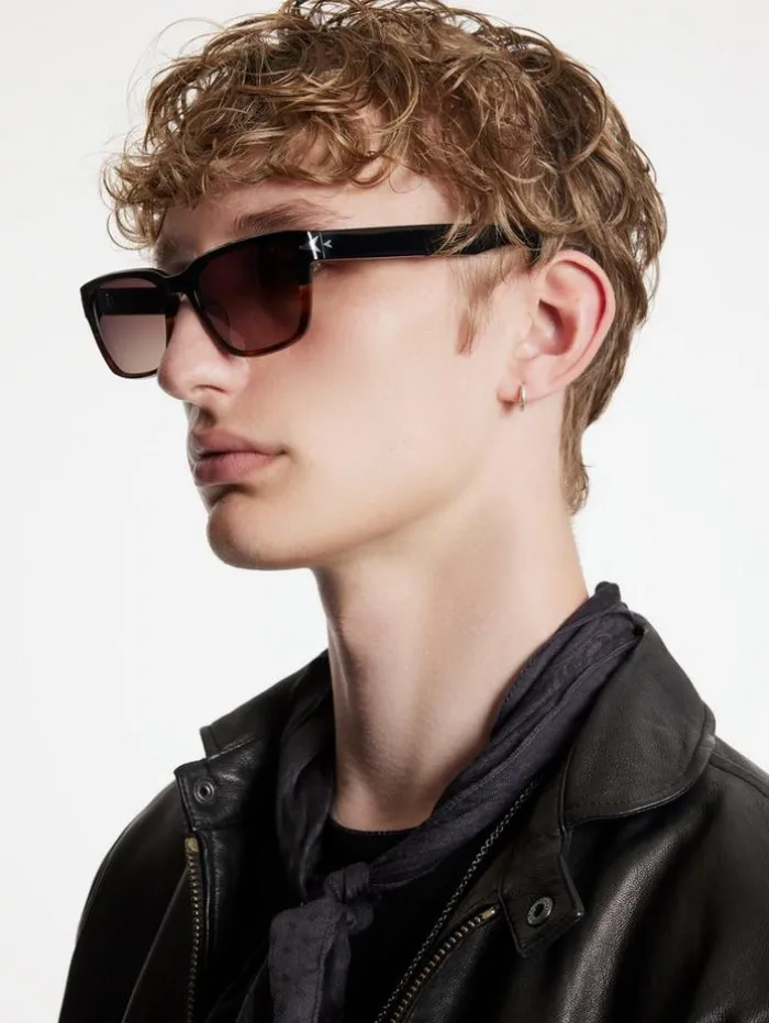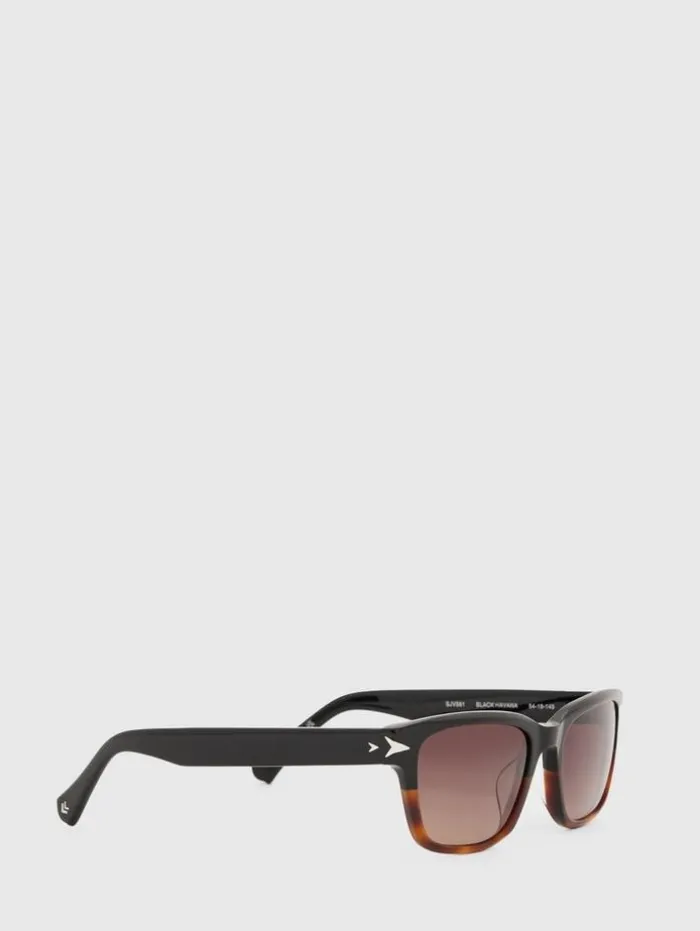 The high-quality acetate on a modern take on a traditional rectangular style is what sets this frame apart, and gives it a rock and roll look. The wide temple arms showcase a double V pattern standing for John Varvatos. The frame comes in three distinct colors, black Havana, cream Havana, and crystal blue. Each frame has a lens in a complementary color and has a special AR blue black coating for additional eye protection.