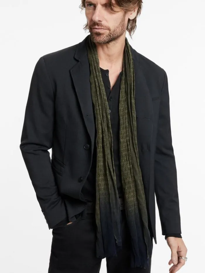 Our Patton Scarf boasts a sophisticated two-tone ombre design. Its crinkled texture enhances its visual appeal adding to its tactile element. Ideal for elevating any ensemble, this scarf seamlessly blends contemporary style with classic elegance.100% Cotton Dry Clean Only Two-Tone Ombre DesignCrinkled Texture Made In Italy