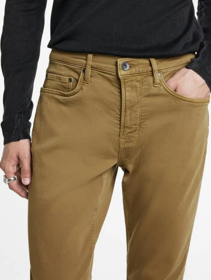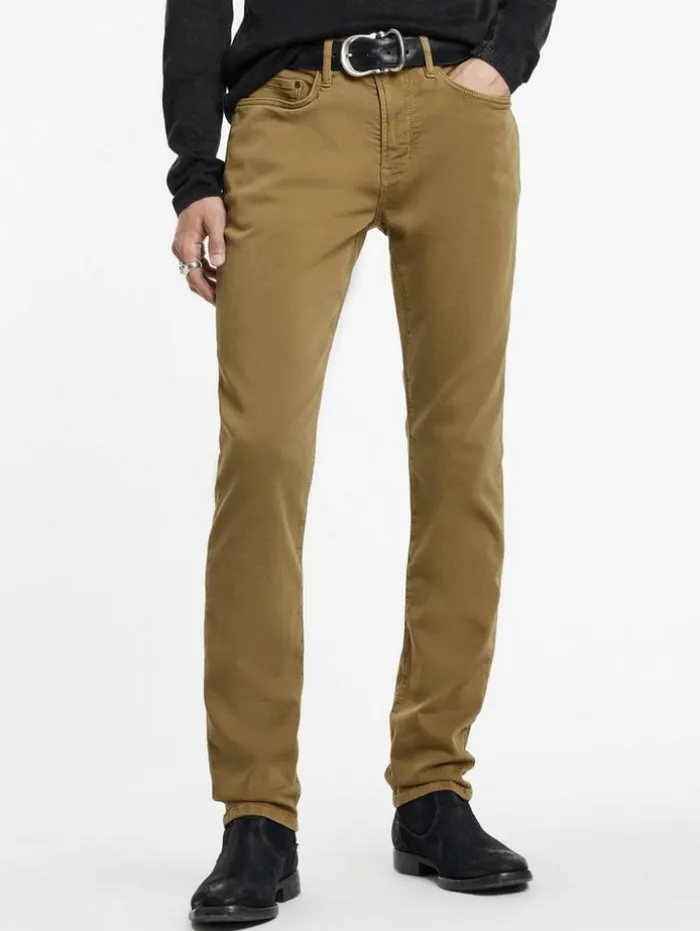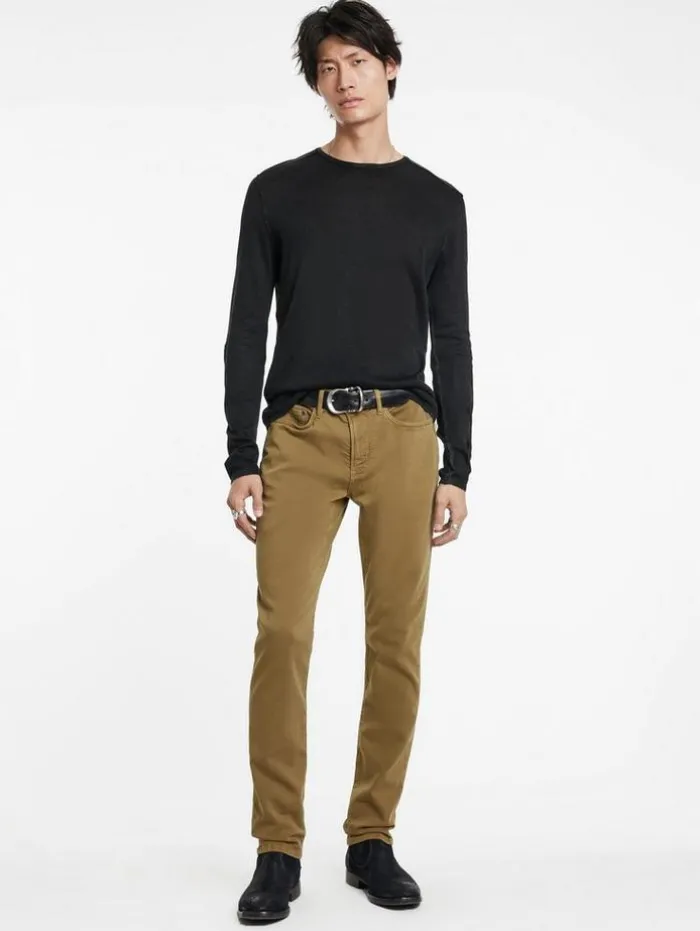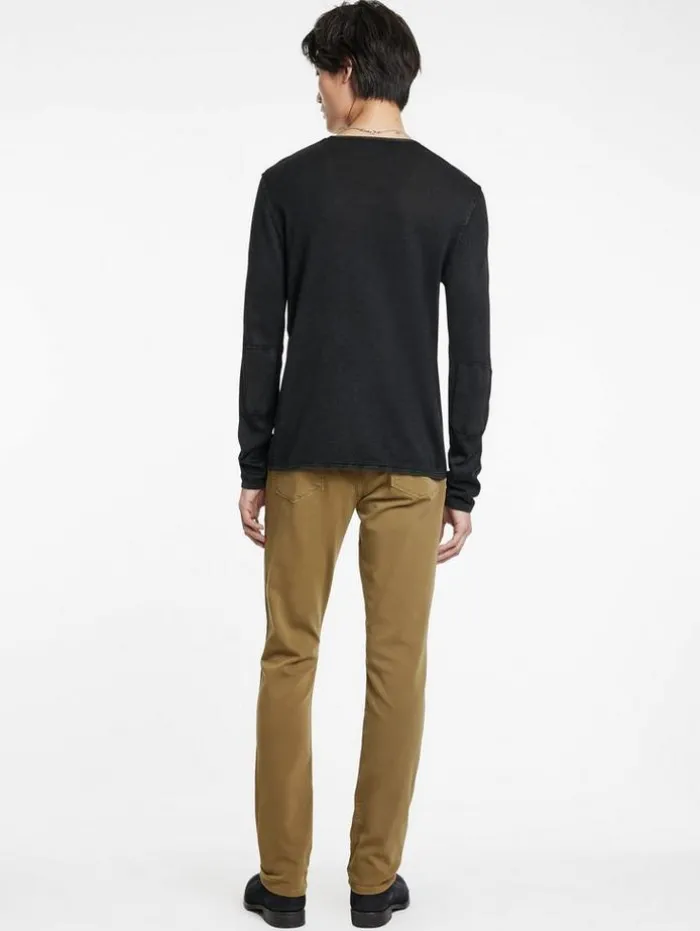 Our Slim Fit jeans exemplify innovative design and refined technique. Crafted from stretch denim, this garment undergoes a unique dyeing process to achieve a dynamic high-low effect. The dark seams contrast with it’s oxblood- hued canvas, highlighting a distinctive balance between traditional craftsmanship and contemporary flair. Pair them with your go-to leather boots and our latest shirt jacket for a sharp look.91% Cotton, 8% Polyester, 1% ElastaneProfessional Dry Clean By Leather ExpertSlim FitFive PocketsZipper FlyStretch DenimGarment DyedHigh Low EffectMeasurement: Waist: 32.5″, Hip: 41”, Inseam: 33″