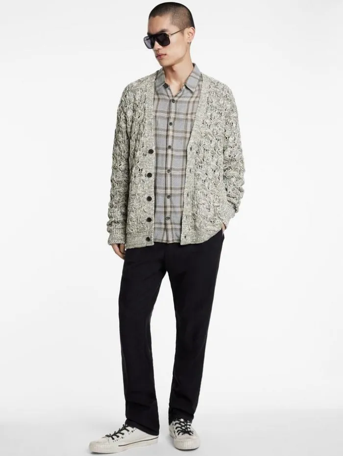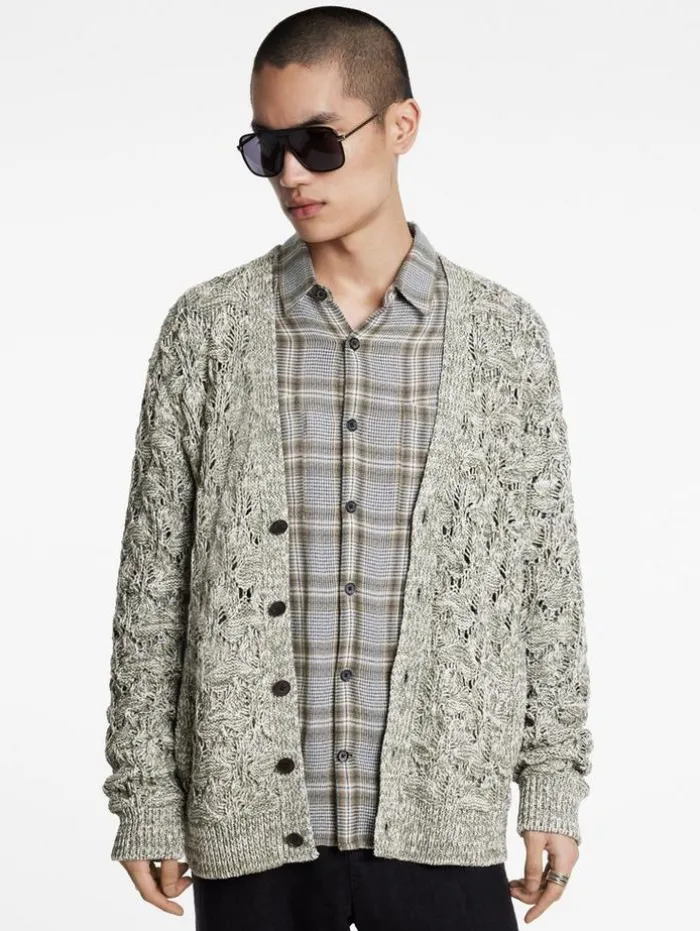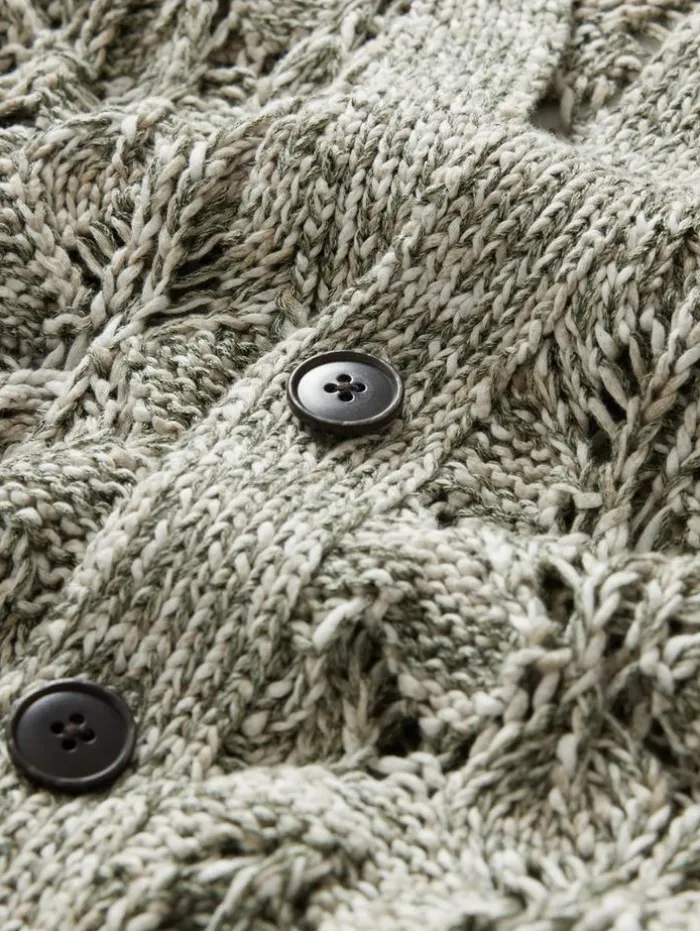 Introducing the Mothe Cardigan, a symphony of texture and style. This regular-fit cardigan features an intricate butterfly float stitch, weaving a delicate and captivating pattern reminiscent of butterfly wings. Enhanced with a chunky leaf float stitch, its design embodies the beauty of nature in every thread. Crafted from the finest cotton, the Mothe ensures both warmth and breathability, ideal for seasonal layering. Antiqued buttons infuse a touch of vintage charm, complementing its classic silhouette.100% Organic Cotton Hand Wash OnlyRegular-FitAntiqued Button ClosureButterfly Float StitchChunky Leaf Float StitchMeasurements: Body Length: 27″, Chest Width (Flat): 21”, Shoulder Width: 18.5”, Sleeve Length: 34″