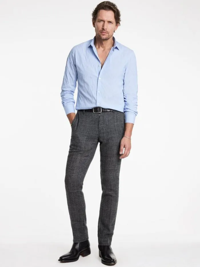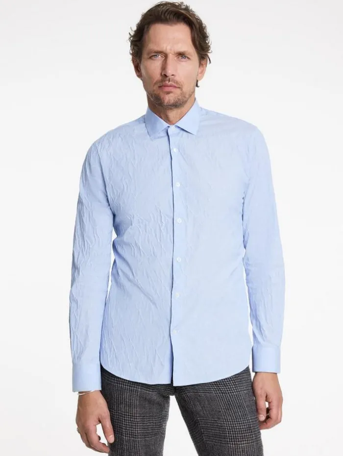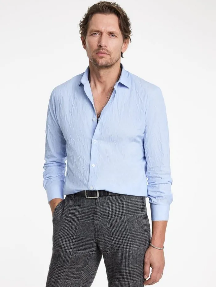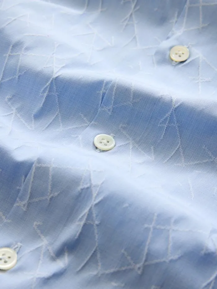 The Stella Dress Shirt redefines classic elegance with a modern take. Tailored to a slim fit and featuring the distinctive Stella collar, this shirt is crafted from a stretch jacquard Italian cotton blend, which enhances its sleek silhouette with a subtle textured aesthetic. The design seamlessly unites traditional style with contemporary elements. Effortlessly transitioning from formal to casual settings, this dress shirt is an indispensable staple in any discerning wardrobe.94% Cotton, 5% Polyamide, 1% ElastaneDry Clean OnlySlim FitStella CollarLong SleeveConcealed Button PlacketStretch Jacquard FabricMade in ItalyMeasurements: Body Length: 77cm, Chest (Flat): 54.5cm, Sleeve Length: 65cm, Neck Circumference: 42cm