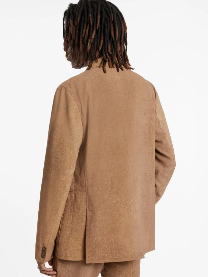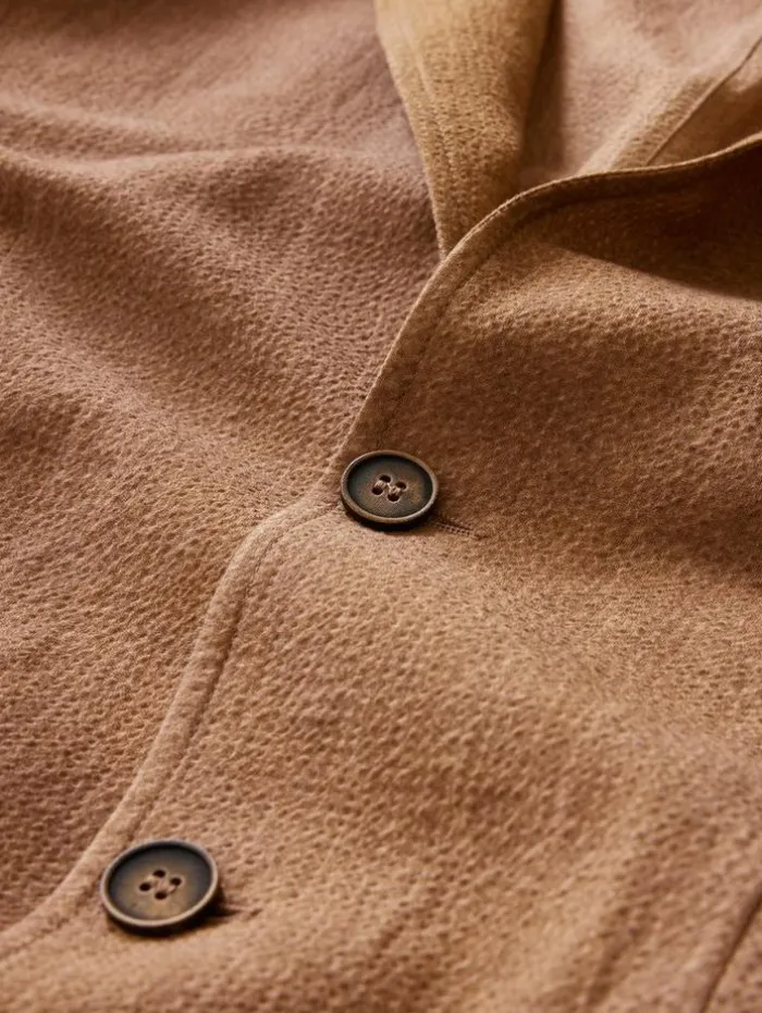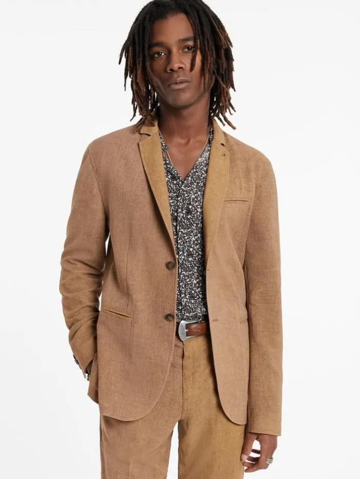 Tailoring in classic JV style, the Allen Jacket is unstructured for a soft shape that drapes elegantly across the body. This slim-fit notch lapel jacket captures the essence of casual sophistication in a versatile clay brown hue. Crafted from fine Italian cotton, its fabric undergoes a double cold-dyed process enriching the jacket’s with a deep, dimensional color while delivering a lived-in feel. Its embossed texture invites a subtle, tactile interest. Unlined for lightness and breathability, the Allen Jacket is the embodiment of understated luxury, ideal for those who value comfort without sacrificing a polished look. 100% CottonDry Clean OnlyButton ClosureSlim FitNotch LapelDouble Cold DyedEmbossed TextureMade In ItalyMeasurements: Front Body Length: 30”, Center Back Body Length: 29.25”, Across Shoulder: 18.5”, Chest: 21” Flat, Sleeve Length: 26.25”