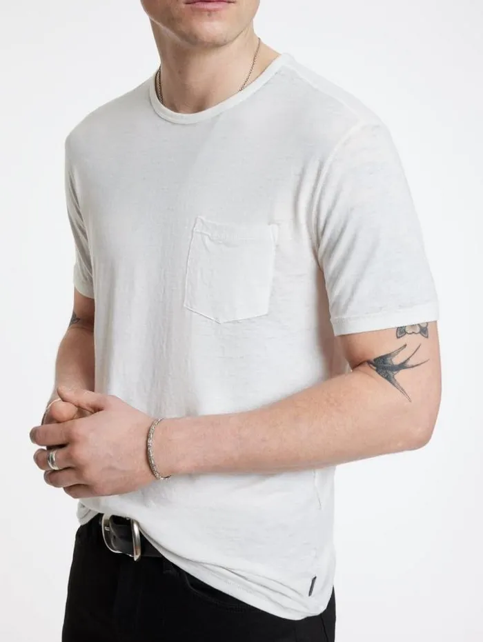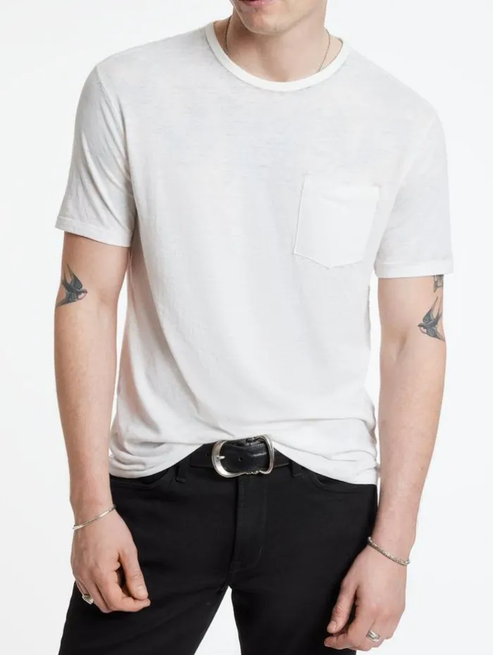 The Bond Burnout T-Shirt is a definitive essential that complements any item in your closet. This short sleeve shirt is crafted from a comfortable cotton blend that features a visually appealing burnout texture. With a convenient patch pocket at the chest, it adds a functional element to its classic design. Whether layered under our signature leathers or worn on its own, the Bond Crew undoubtedly takes center stage in your look. Main: 60% Cotton 40% PolyesterMachine Wash Cold Crew Neck Short Sleeve Burnout EffectSingle Front Patch Pocket