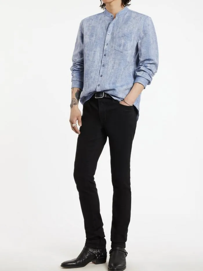 Crafted from a lightweight cotton and linen blend fabric, the Bryan Shirt showcases refined tailoring. The slim fitting shape is accentuated with an extended top collar while classic chest pockets are the finishing touch.70% Cotton, 30% LinenMachine Wash ColdButton ClosureLong Sleeves Extended CollarSlim FitMeasurements: Front Body Length: 30.125″, Center Back Body Length: 30.5, Across Shoulder: 19.25″, Chest: 21.75″ Flat Sleeve Length : 26.75″