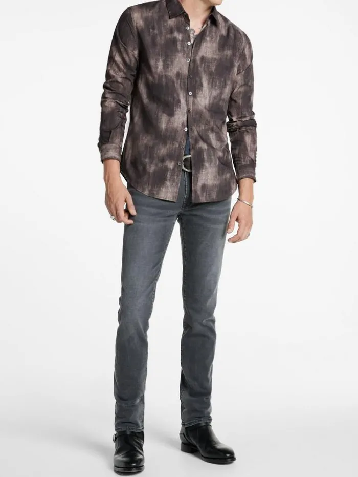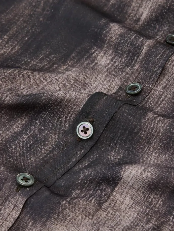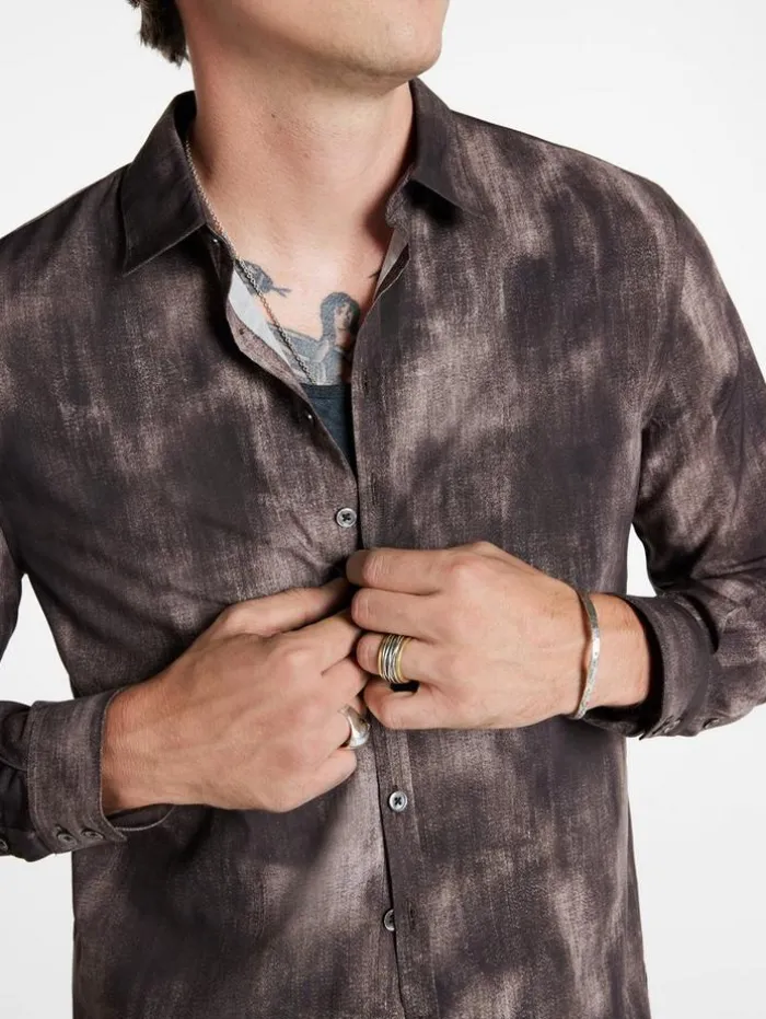 This iteration of our Bucks Shirt is distinguished by its striking abstract print. Expertly crafted with precision from Japanese fabric, it stands out not only by design but in feel. Its multi-button closure emphasizes its sleek slim-fit silhouette. Beyond its distinct appearance, this shirt stands as a testament to impeccable craftsmanship, offering the perfect balance of style and structure. 100% Polyester Hand Wash Cold Slim Fit Japanese Fabric Classic Collar Long Sleeves Multi-Button Closure Measurements: Front Body Length: 30.25”, Center Back Body Length: 30”, Chest: 42.5”, Sleeve Length: 25.75”