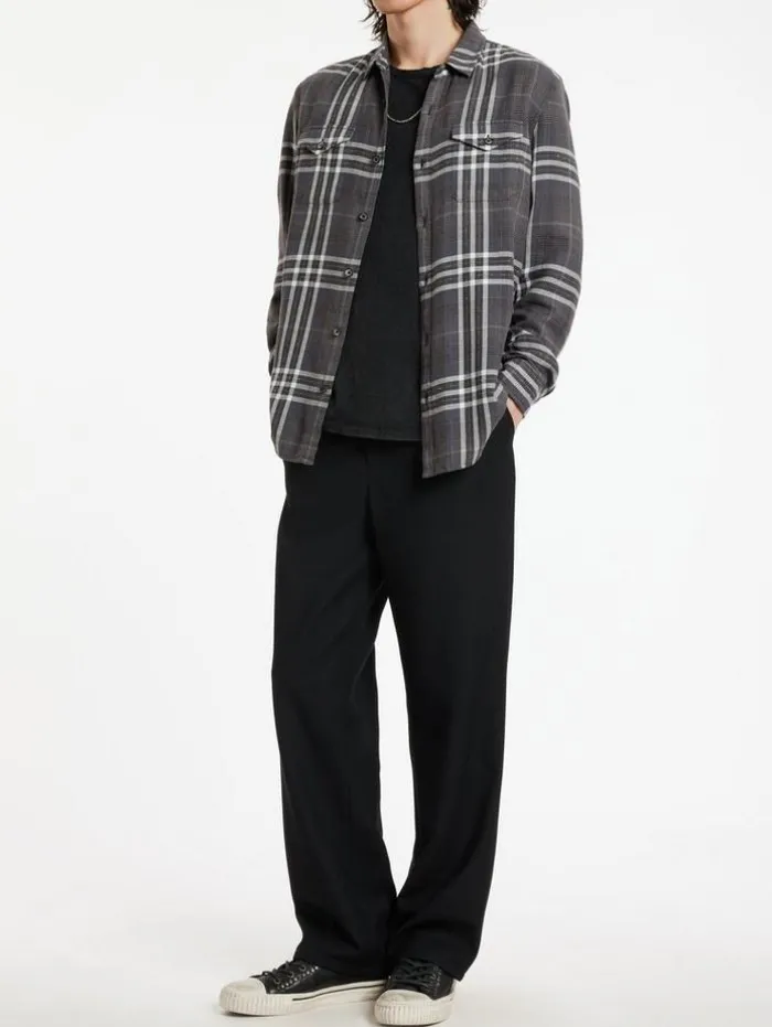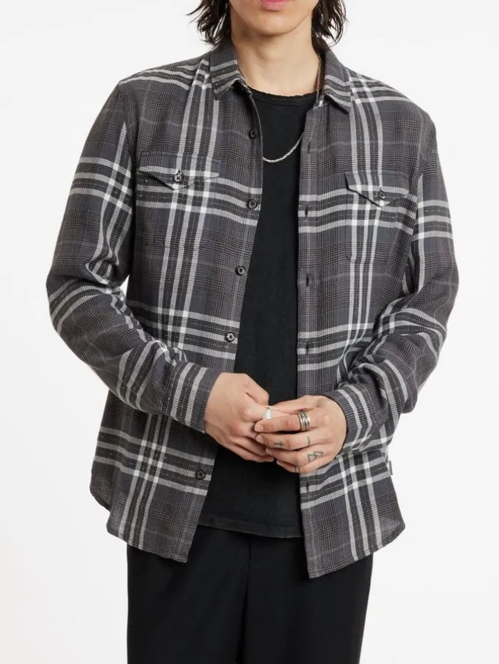 The perfect top layer – take a nonchalant approach to everyday styling with the Dale Shirt. The oversized plaid pattern has a western feel – check out the brushed texture and horn buttons. This one looks great over your favorite band tee.100% Cotton Machine Wash ColdOvershirtCollarHorn ButtonsLong Sleeves Button Closure Brushed Flannel TextureMeasurements: Front Body Length: 29.5″, Center Back Body Length: 29.5″, Across Shoulder: 18.75″, Chest: 21.5″ Flat Sleeve Length : 25.75″
