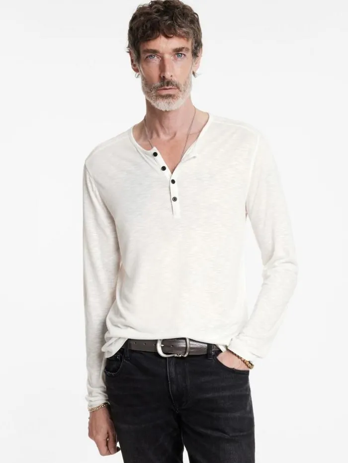 From Portugal comes the Danville Henley, a core style renowned for its silky modal blend fabric with a richly textured finish. Subtly enhanced with brushed antiqued metal buttons, shoulder tape, and meticulous seam detailing, this understated essential adapts to any look.40% Modal, 40% Viscose, 20% WoolDry cleanCollarLong sleeveAntiqued metal buttonShoulder tape detailSeam detail on button placketMeasurements: Body Length: 27.5”, Shoulder Width: 18”, Chest Width: 20.25”, Sleeve Length: 34.75”