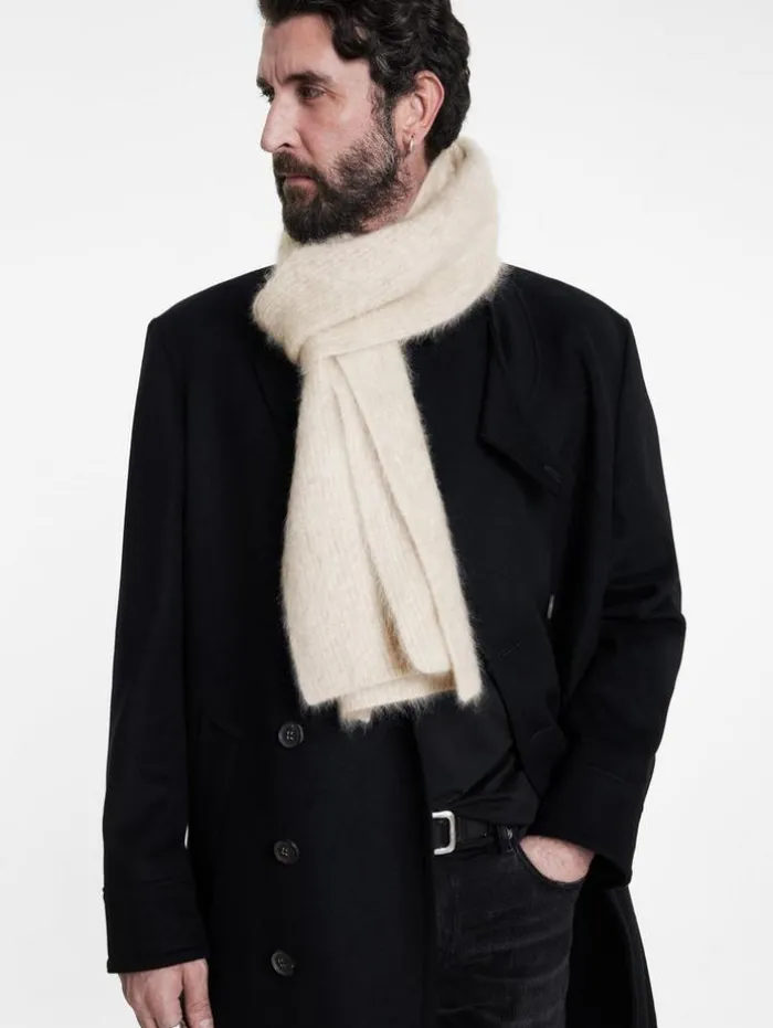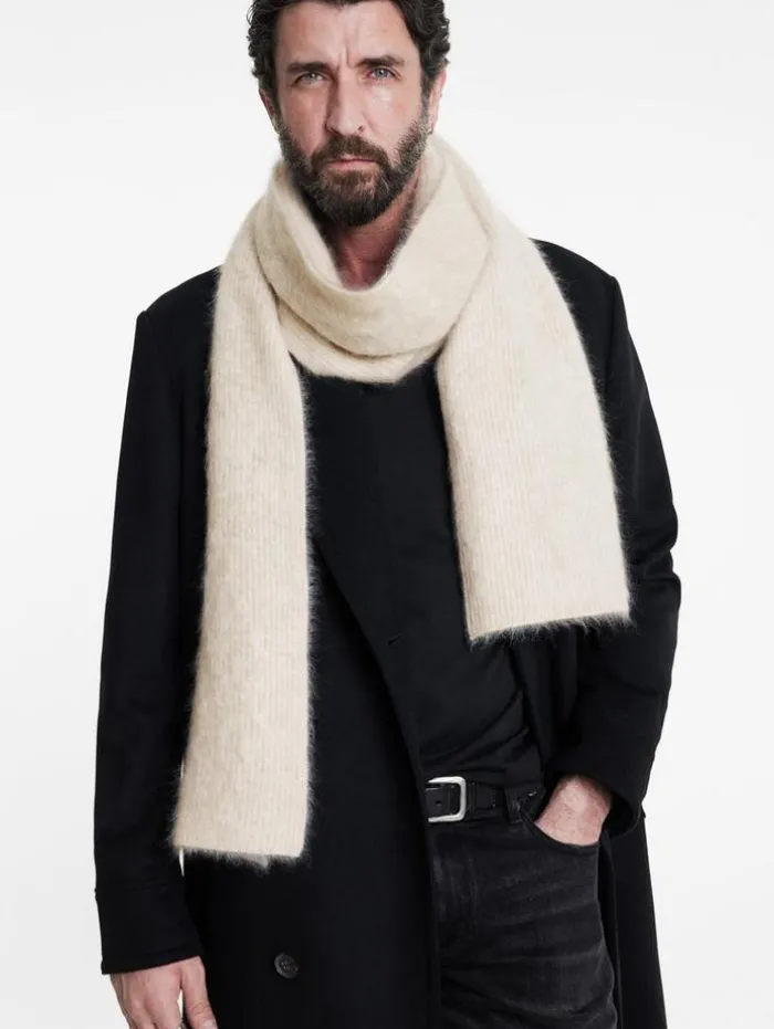 Spun from luxuriously soft, brushed cashmere, the Lea Scarf is the quintessential cold-weather accessory. Anchored by our signature leather label, it’s the perfect addition for layering up in style against the elements.100% Brushed Cashmere Hand Wash Cold Half Cardigan Rib StitchLeather Label Measurements: Length: 80″, Width: 10″