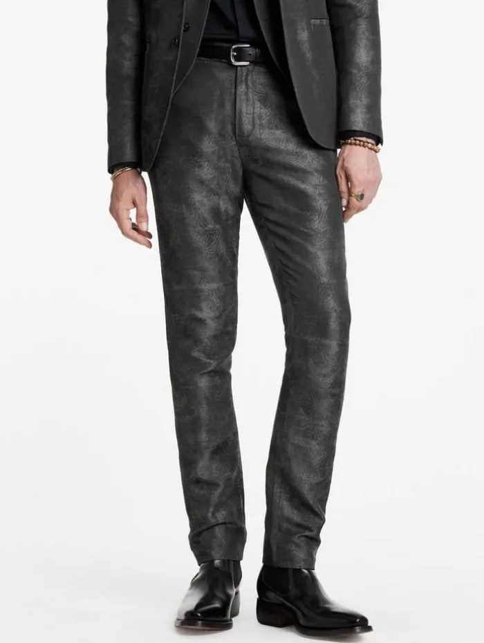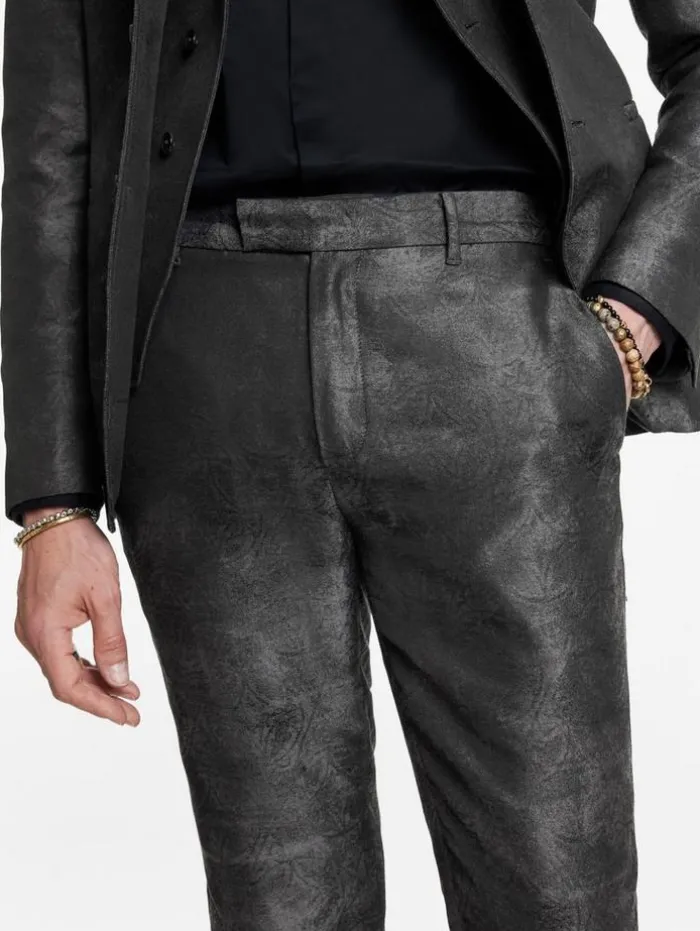 Returning with a refined update, the Mercer Pants maintain their classic appeal with a well-known form and function. Woven on Italian looms using a responsible cotton-polyester blend, its intricate jacquard design subtly fades across the fabric through the interplay of warp and weft mélange effects. These slim-fit pants, complete with welt hip pockets and an extended waistband, transition effortlessly between sharp suiting and casual refinement.70% Cotton, 30% PolyesterDry clean onlySlim fitWelt hip pocketsZip and button ClosureExtended waitbandFaded jacquard techniqueMeasurement: Waist: 34.25″, Hip: 41.75”, Inseam: 33″