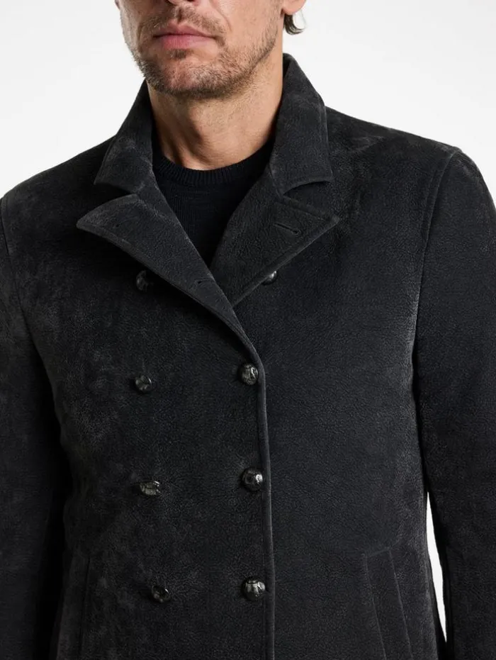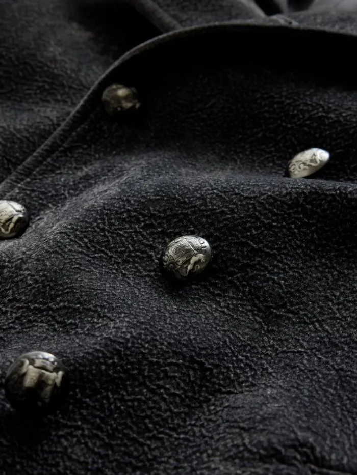 Timelessly constructed, the Regan Coat is a classic reimagined for modern dressing. Crafted in Italy from a fine cotton blend, this double-breasted coat is dyed in a deep charcoal hue. Enhanced with colored viscose fibers, it boasts a richly textured, flocked finish that lends both movement and compactness to the material. A special after-treatment imparts a lustrous, hammered effect, deepening the design’s sophistication. With its mid-length cut and metal multi-button front, the Regan is as versatile as it is stylish. Don it over a suit or pair it with casual layers for a look that captures the rarified sophistication of JV.50% Cotton, 50% ViscoseDry Clean OnlyDouble-BreastedMulti-Button ClosureWelt PocketsFlocked FinishMade in ItalyMeasurements: Body Length: 89cm, Chest Width (Flat): 54.5cm, Shoulder Width: 48cm, Sleeve Length: 66cm