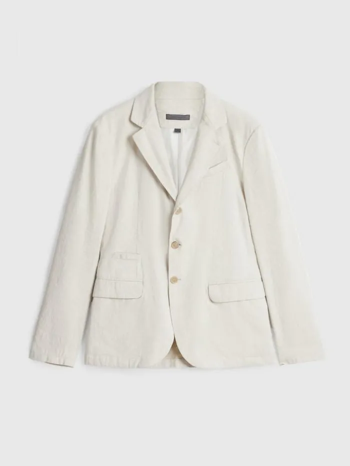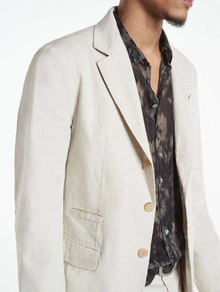 The Rind is as breezy as you could need. It’s crafted from a blend of cotton and linen that’s coated for a slight lustre.66% Linen, 32% Cotton, 2% ElastaneHand Wash ColdSlim FitNotch LapelFlap PocketsButton FrontItalian Cloth