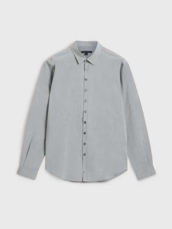 With a nod to simple style and refined sensibility, the Bucks Shirt is a masterpiece in design. Expertly crafted from Italian chambray, it presents a striking balance between shine and matte. The multi-button closure emphasizes its sleek slim-fit silhouette. Infused with stretch yarn, it seamlessly marries comfort with finesse. Beyond its elegant appearance, this shirt stands as a testament to impeccable craftsmanship, offering an unparalleled experience in both elegance and functionality. 49% Cotton, 46% Viscose 5% Elastane Hand Wash Cold Slim Fit Italian Fabric Classic Collar Long Sleeves Multi-Button Closure Measurements: Measurements: Front Body Length: 30.25”, Center Back Body Length: 30”, Chest: 42.5”, Sleeve Length: 25.75”