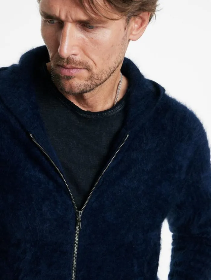 The Catherine returns this season, redefining the classic hoodie with the plush hand feel of brushed cashmere. Featuring a 2×4 ribbed hood and sleeves for rich texture, this piece combines superior craftsmanship with a rebellious approach. The antiqued metal zipper secures its regular fit while enhancing its timeless attitude, making it an iconic addition to any wardrobe.100% CashmereDry Clean OnlyRegular FitZip ClosureLong Sleeve2x4 Ribbed HoodBrushed TextureOrganic CashmereMeasurements: Body Length: 26.75”, Chest Width (Flat): 20.5”, Sleeve Length: 34.5”