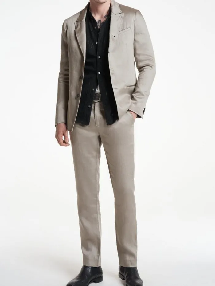 The Gido Jacket is the perfect addition to our soft collection. This wardrobe essential is crafted from a silky, Italian linen. It’s shaped to a dropped neck peak lapel structure. Summer suiting has never looked better. 100% LinenDry Clean OnlyButton ClosureDropped Neck Peak LapelLong SleevesSilky Soft TextureItalian Fabric
