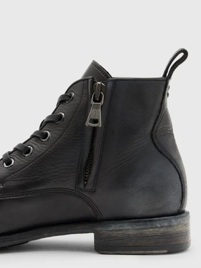 Handcrafted from full-grain calf leather, our Moto Lace Boots are individually hand-painted and distressed, every pair boasts its own one-of-a-kind finish, merging rugged elegance with personal style. The inclusion of a signature medial zipper provides contemporary convenience and a sleek silhouette. Built with Goodyear welt construction, they offer longevity and enduring quality. Featuring an injected rubber tread on a full leather sole, these boots provide stability and refined aesthetics. Deep burnishing and a polished finish enhance the leather’s natural richness, highlighting the rebellious attitude of the Moto Boot. Upper: 100% Full-Grain Calf LeatherLining: 100% Calf LeatherOuter Sole: 100% Leather and RubberLace UpMedial ZipperDistressed FinishGoodyear Welted ConstructionDeep Burnishing & PolishStacked HeelMade in Italy